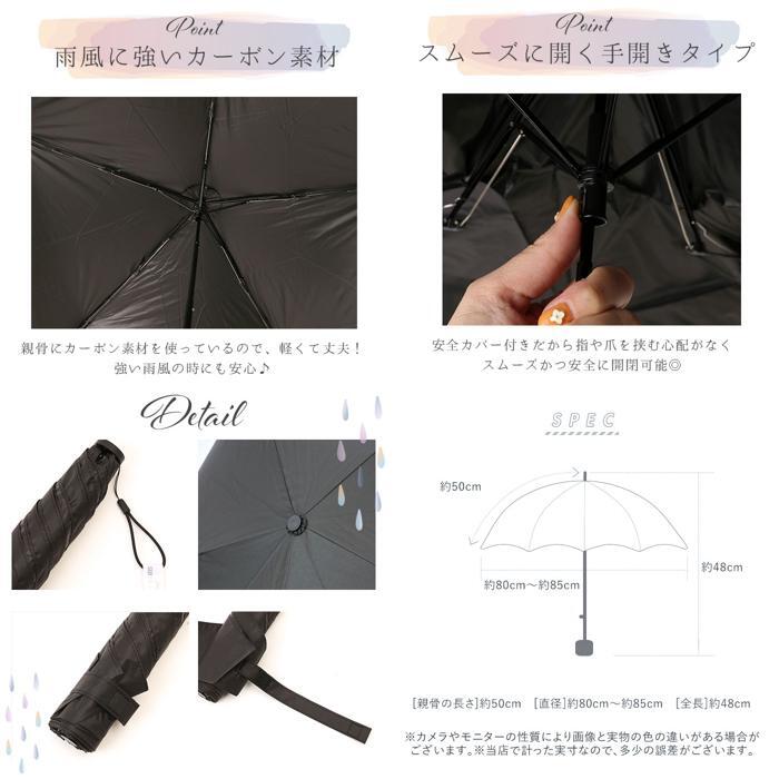 | 商品説明 | ・・超軽量でコンパクトな晴雨兼用の折りたたみ傘が登場! ・【晴雨兼用で強い日差しでも安心】 ・紫外線遮蔽率99.9%以上、遮光率99.9%以上!生地の裏面にポリウレタン樹脂でコーティング加工されているので、お肌を守りたい女性に嬉しい仕様♪ ・【約120g超軽量】 ・わずか約120gの超軽量コンパクト!バッグのすき間に入れて毎日持ち歩いても邪魔にならない!急な雨でも安心してお出かけ! ・【雨風に強いカーボン素材】 ・親骨にカーボン素材を使っているので、軽くて丈夫!強い雨風の時にも安心♪ ・【大人かわいいデザイン】 ・シンプルなニュアンスカラーでデザインのバリエーションがあるので、お好みのデザインを選んで憂鬱な雨の日が快適に楽しくなる。 |