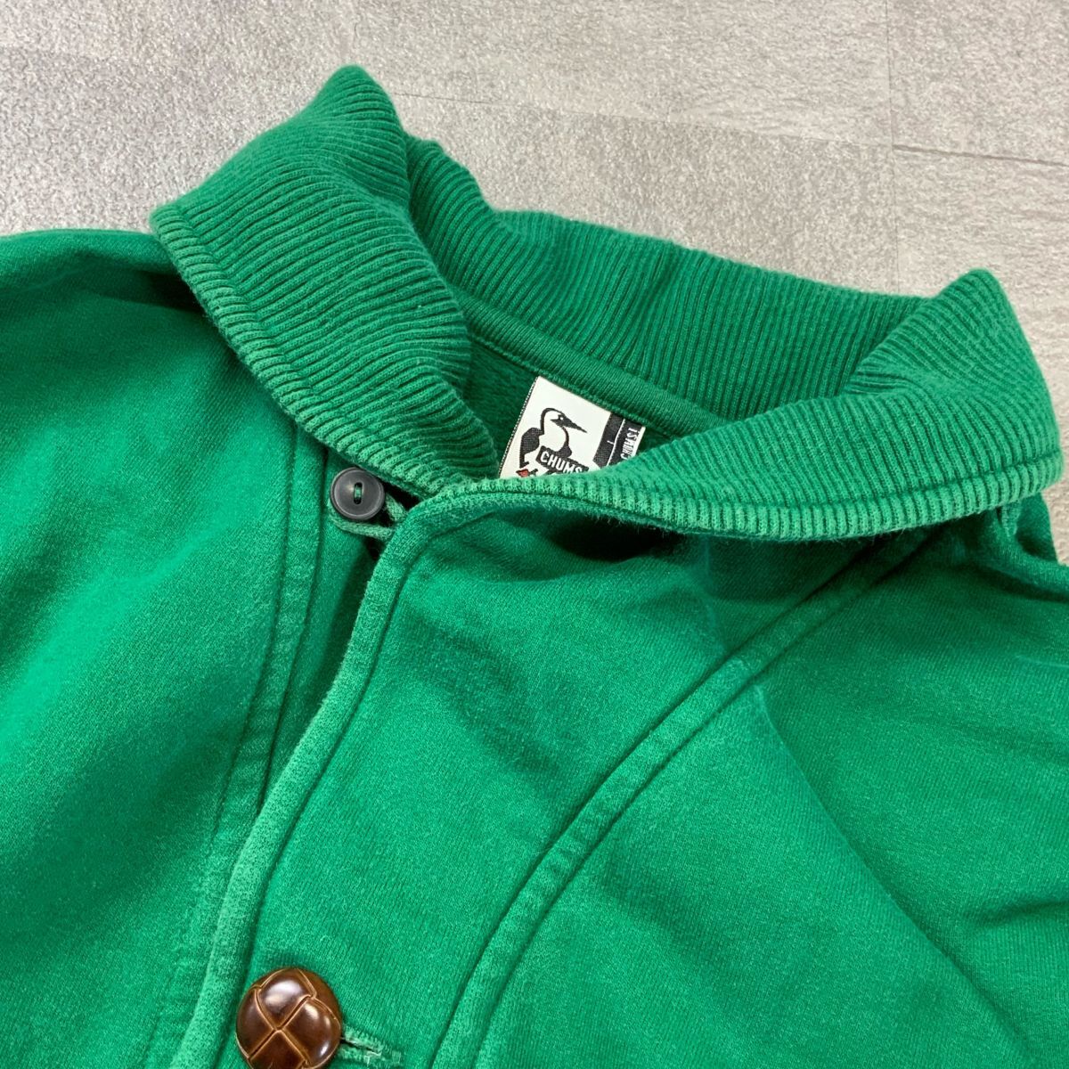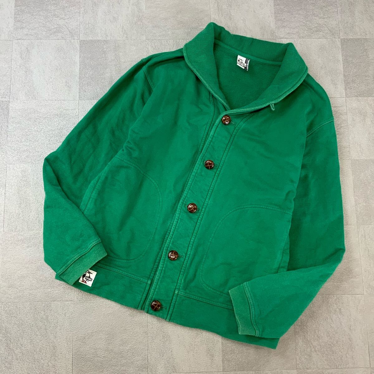 CHUMS チャムス ショールカラー 包みボタン スウェット カーディガン 希少カラー グリーン メンズ M