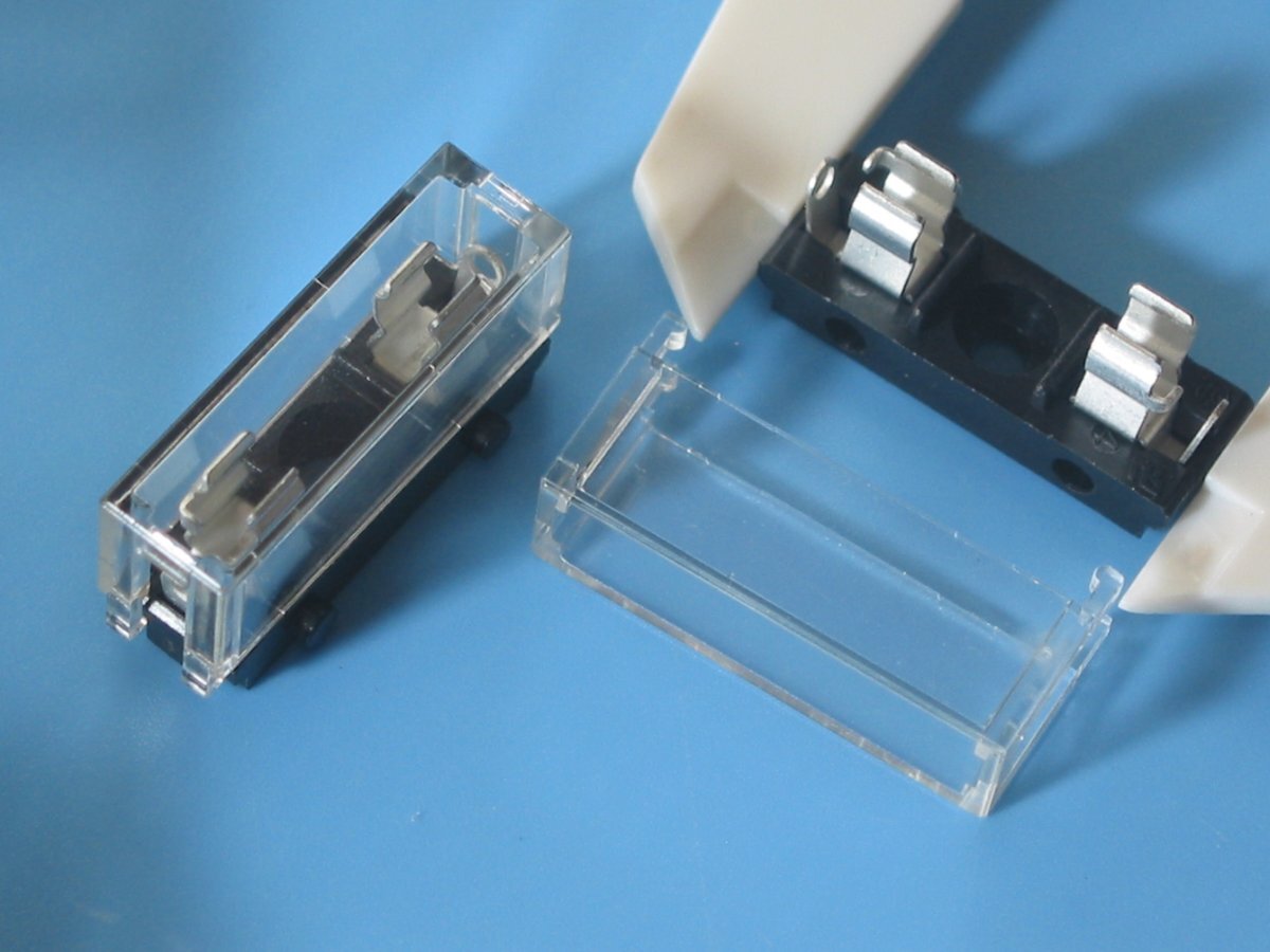 サトーパーツのΦ5.2mm×20mm ヒューズホルダー F-60-B 2個とカバーF-60-1C 2個のセットです。