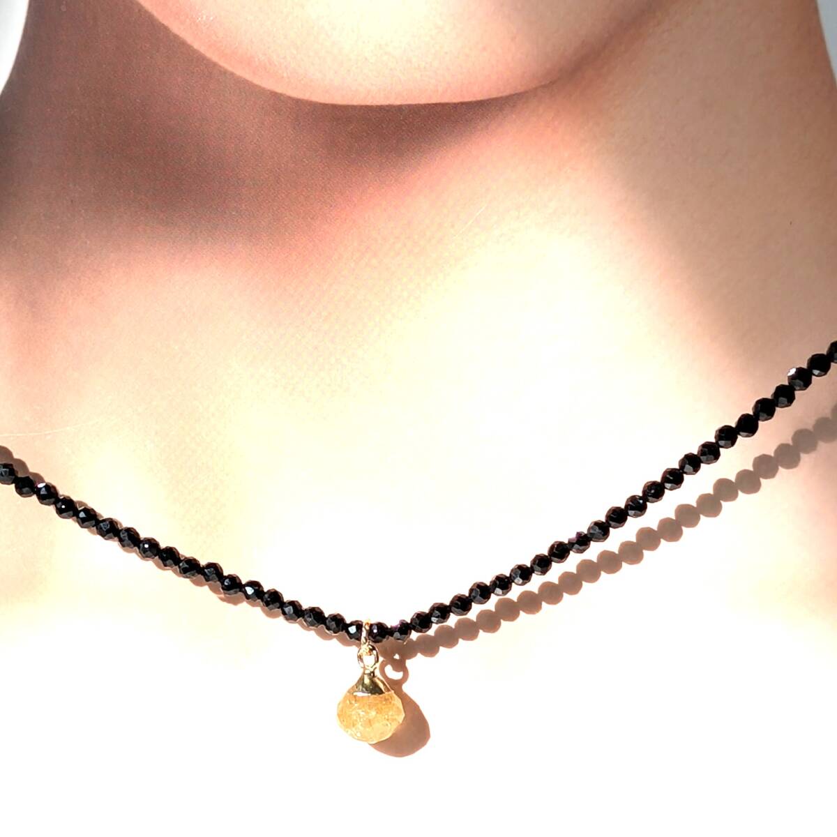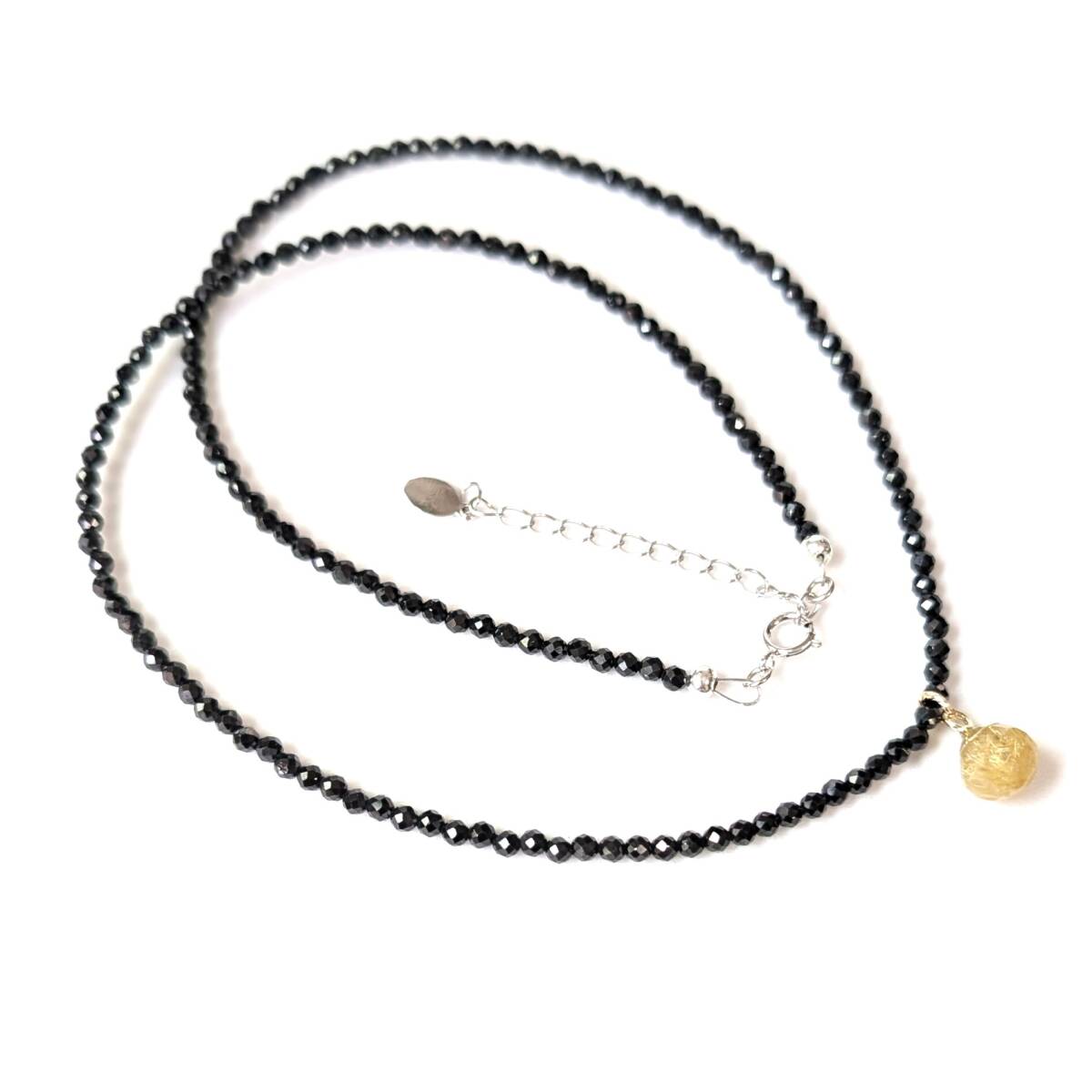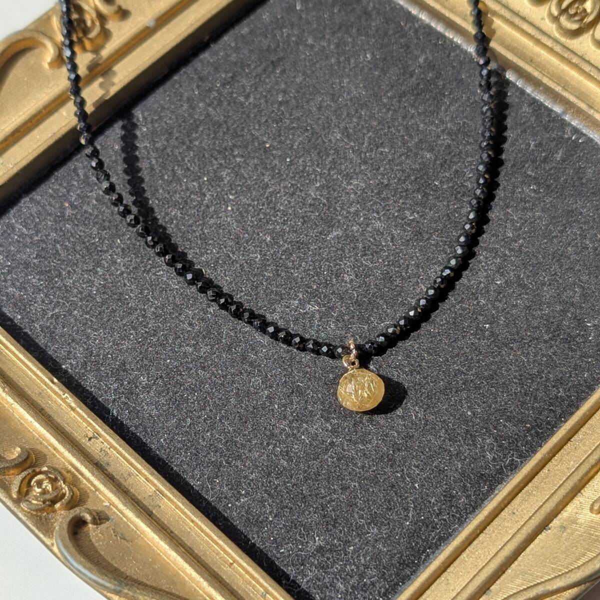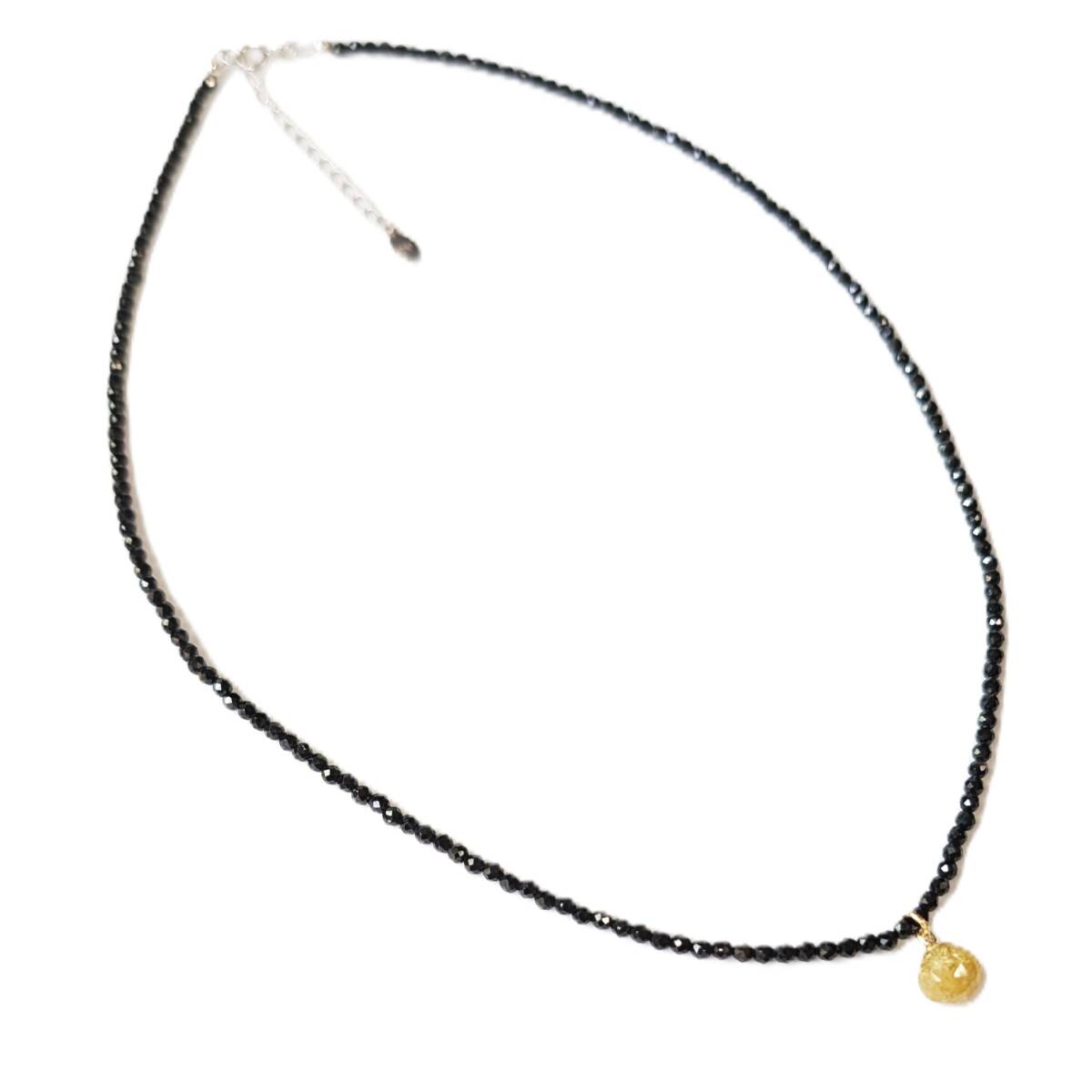 ☆芸能人やスポーツ選手がよく身に着けているブラックスピネルに、ブリオレットカットを施したゴールドルチルチャームを合わせてデザインしたネックレスになります!