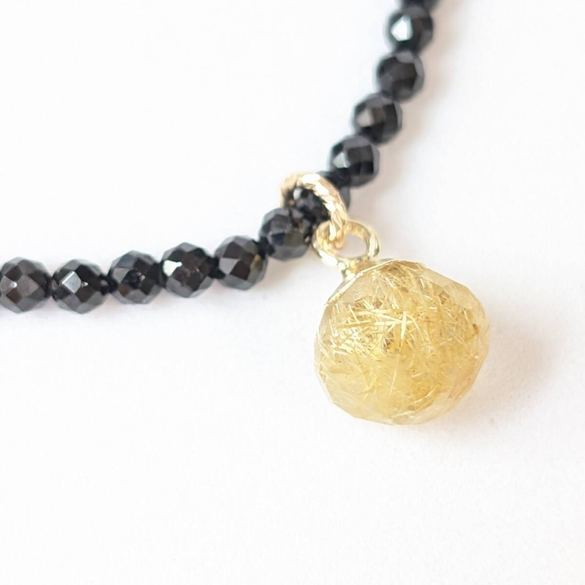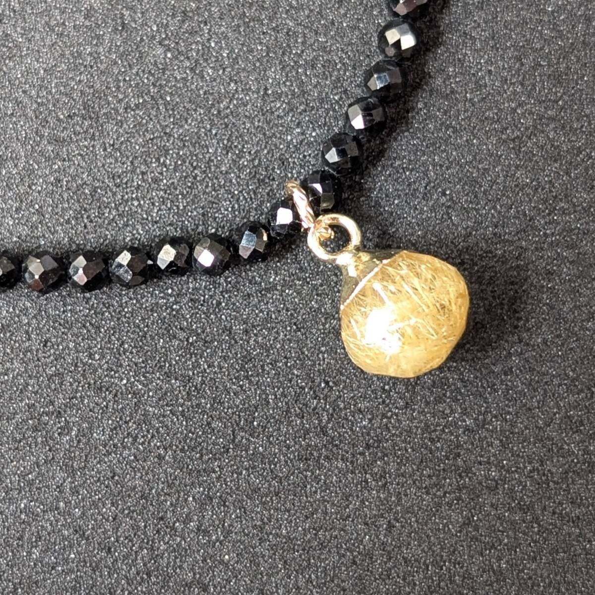 ゴールドルチルチャーム ブラックスピネル パワーストーン ネックレス 宝石質 エナジーストーン 芸能人やスポーツ選手も愛用 長さ調整可能