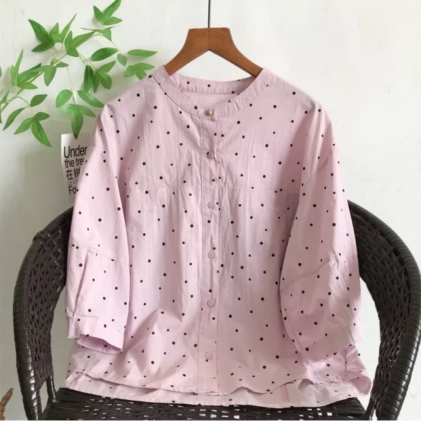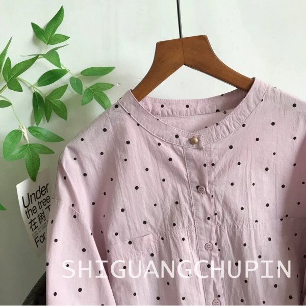 sg チュニック トップス ワイシャツ ゆったり フリーサイズ 綿100% 大人可愛 ナチュラル 通気性肌触り抜群 ドット 縫い合わせ ピンク