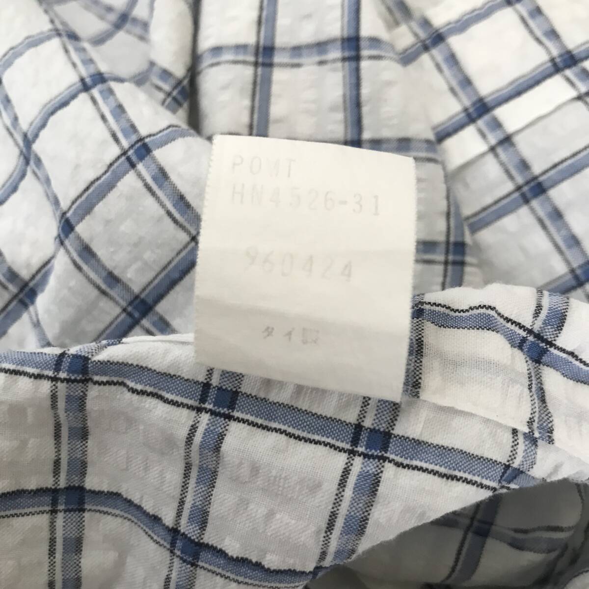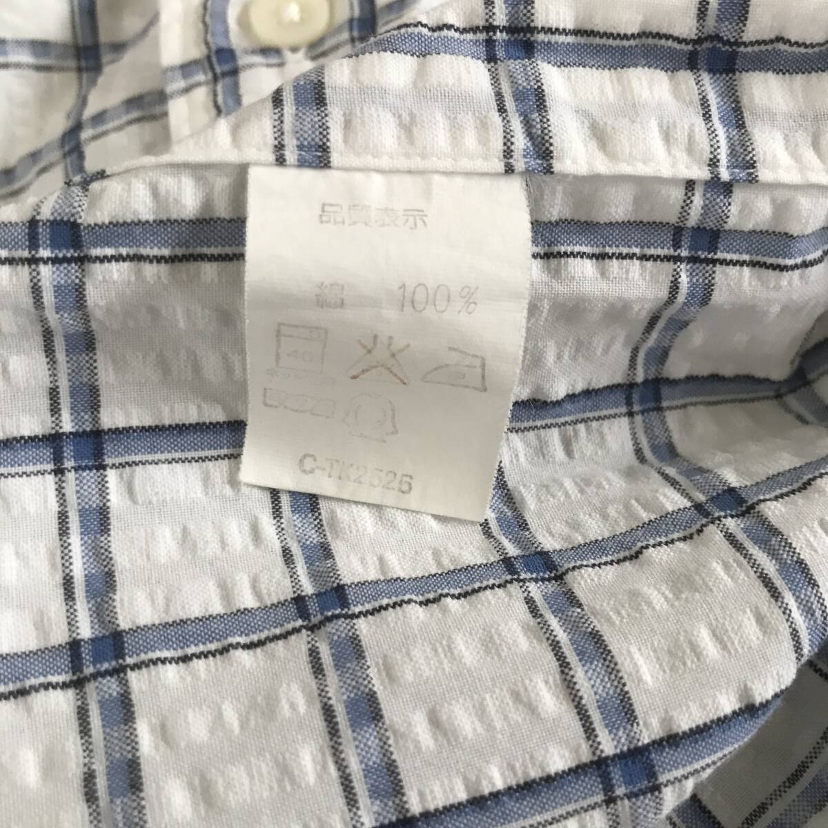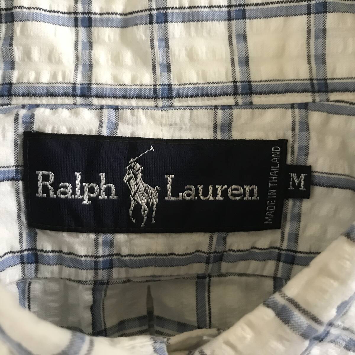 Ralph Lauren ラルフローレン メンズ チェック柄 シアサッカー半袖B.D.シャツ 良品 size M/XL BEE2405