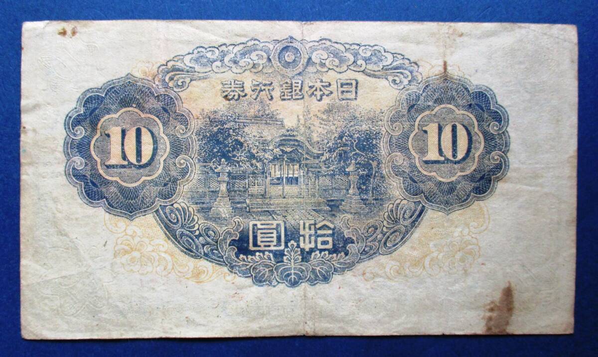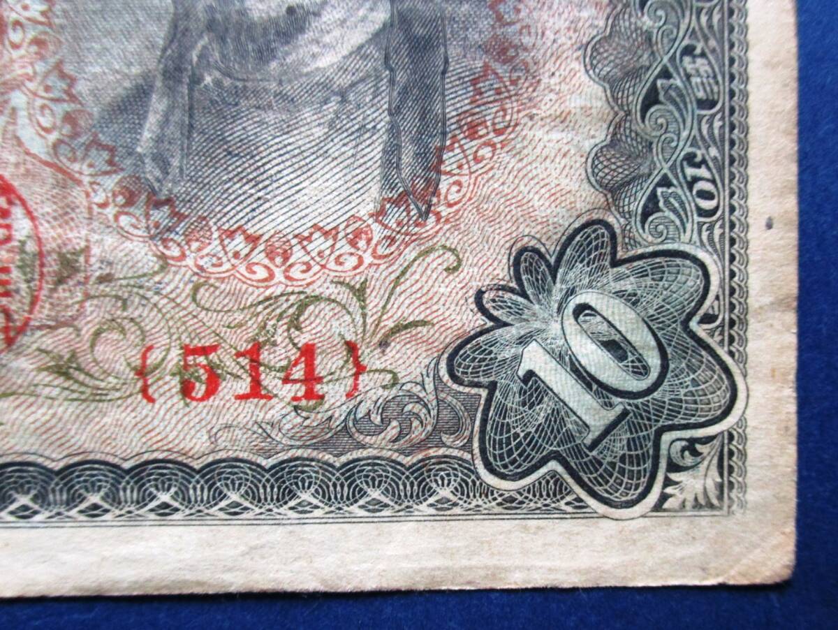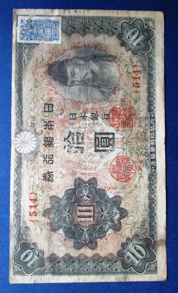 日本紙幣 改正不換紙幣10円 3次10円証紙付き  SS83  画像参照してください。
