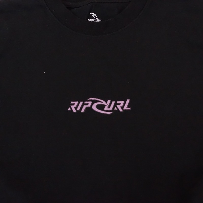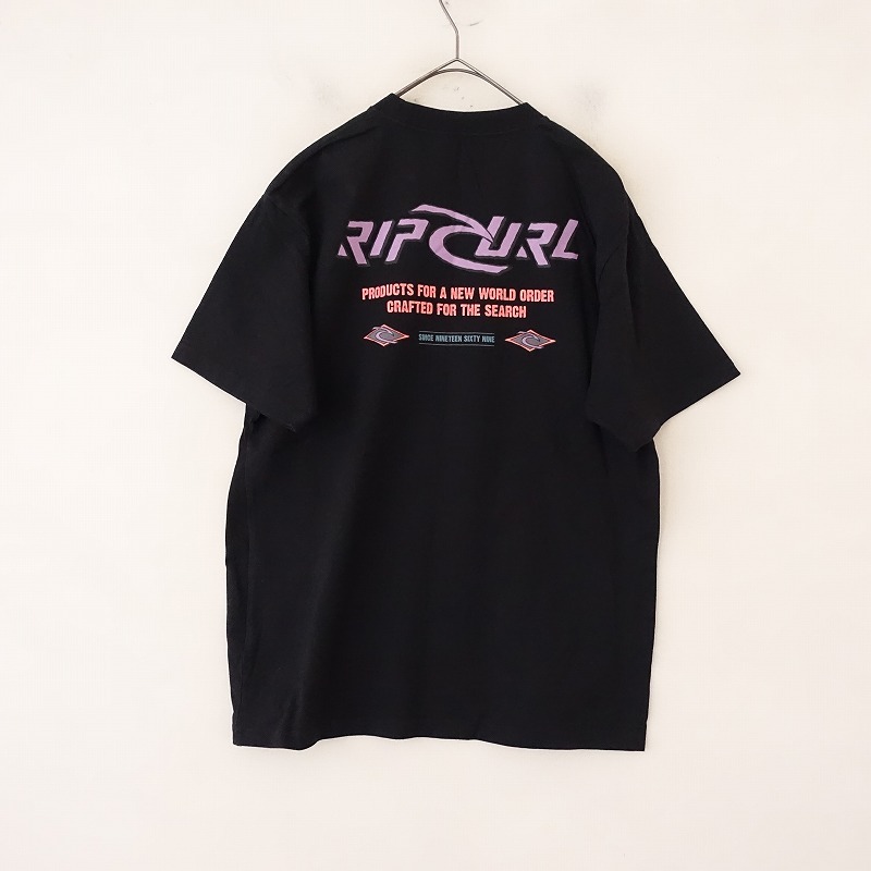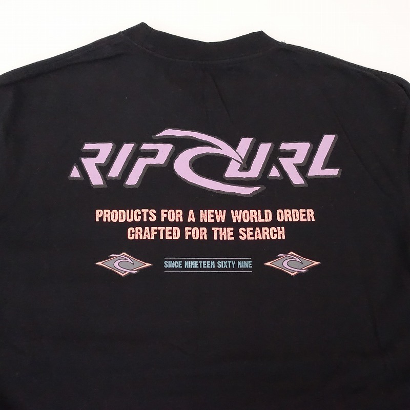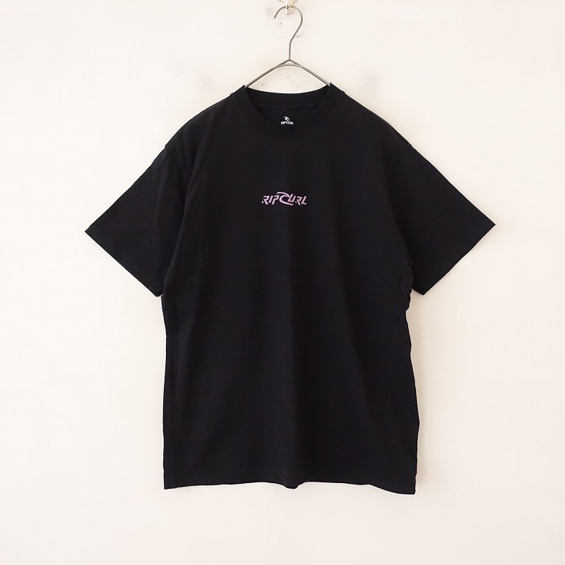 RIP CURLのコットンプリント半袖Tシャツです。カラーはブラックの天竺地で、ラベンダー・傾向オレンジ・ライトグリーン・ダークグレーでロゴプリントがあしらわれております。 |