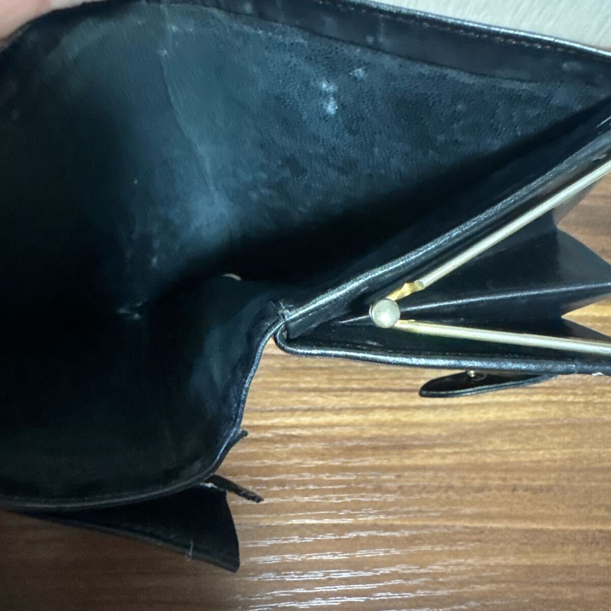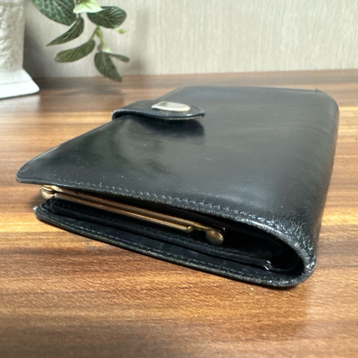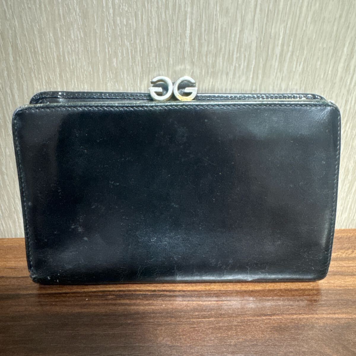 GGのがま口つまみがポイントになったコインケース付き2つ折り財布です。