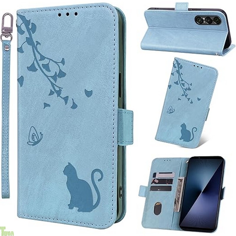 ライトブルー 手帳型 高品質 PUレザー 柔らかいTPU素材 エクスペリア Xperia 1 VII 保護 財布型 スタンド機能 カード収納 ケース カバー