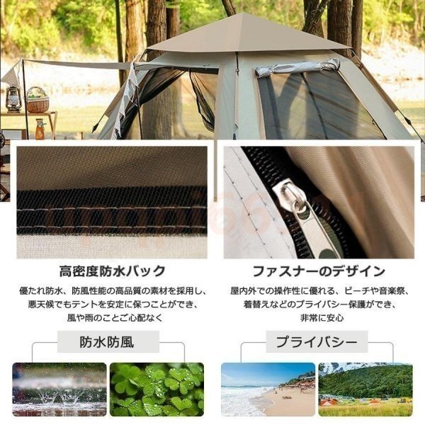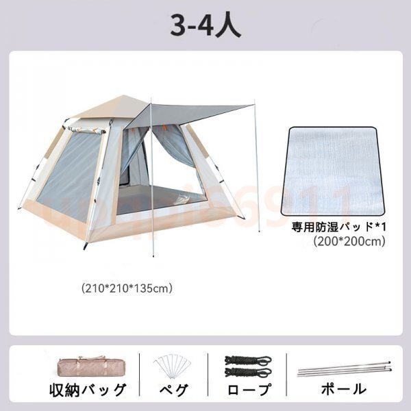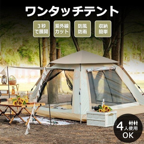 テント ワンタッチテント 大型 ポップアップテント 3-4人用 軽量 両面メッシュ 簡易 紫外線防止 防災 防水 収納袋 ビッグテント アウトドア