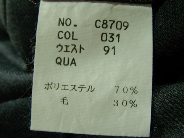 ssy6255 メンズ スラックス ■ ノータックパンツ ■ グレー 無地 シンプル 毛混素材 ウエスト91cm