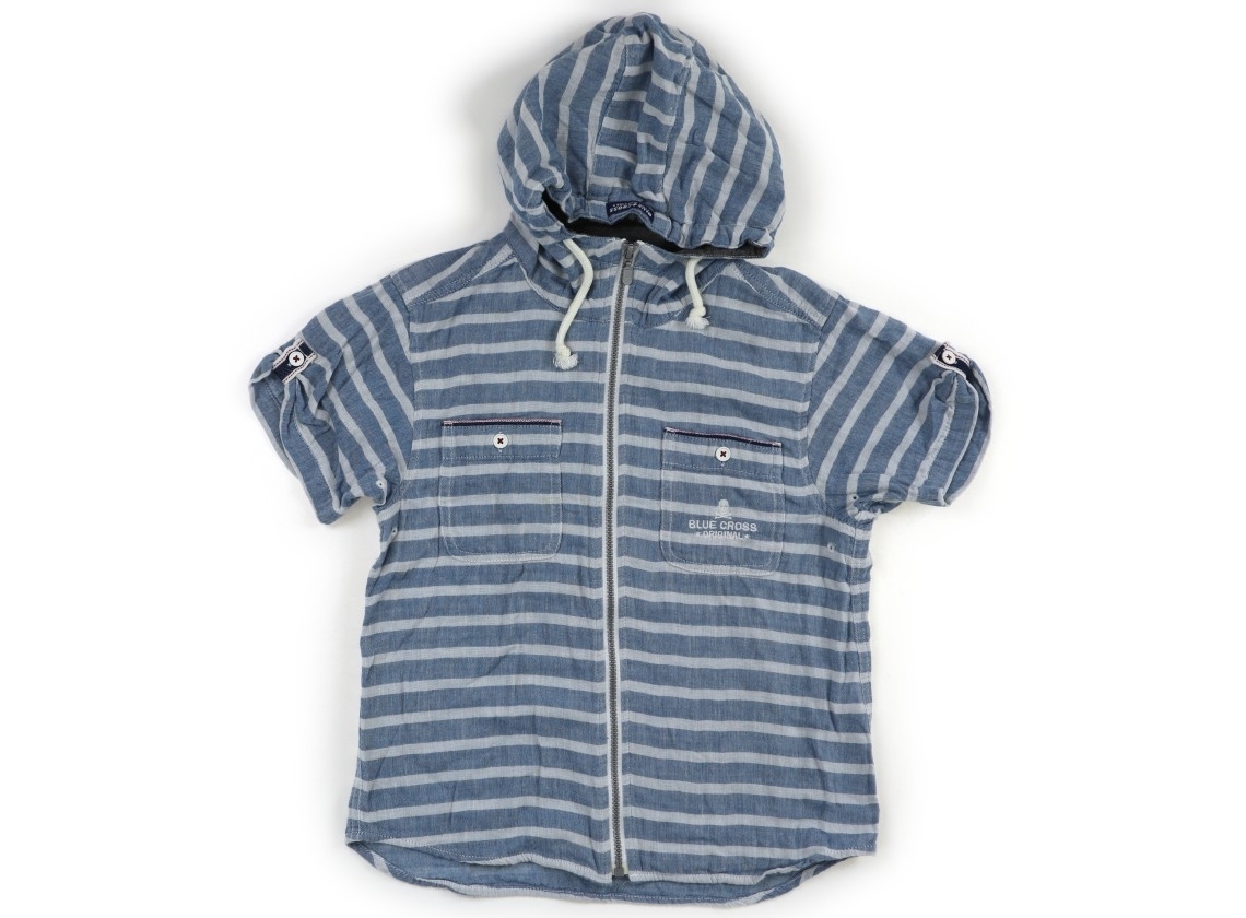 実際のサイズ表記はS。薄手のコットン製、フードは縫い付けです。ロールアップ用のタブ付きです。胸と袖に黄色いシミが見受けられます。