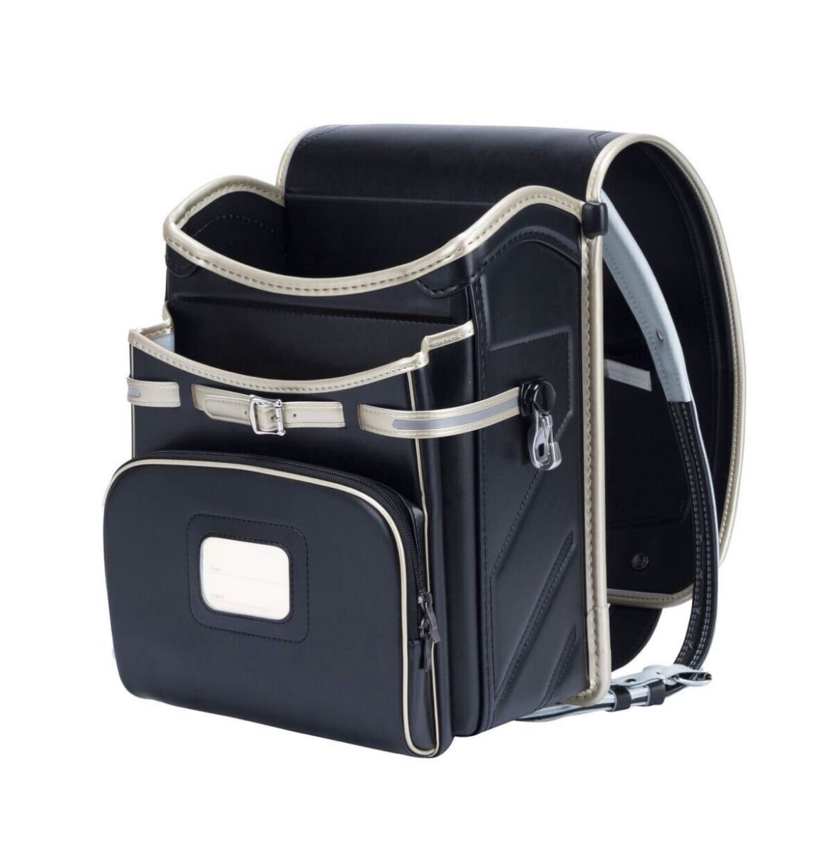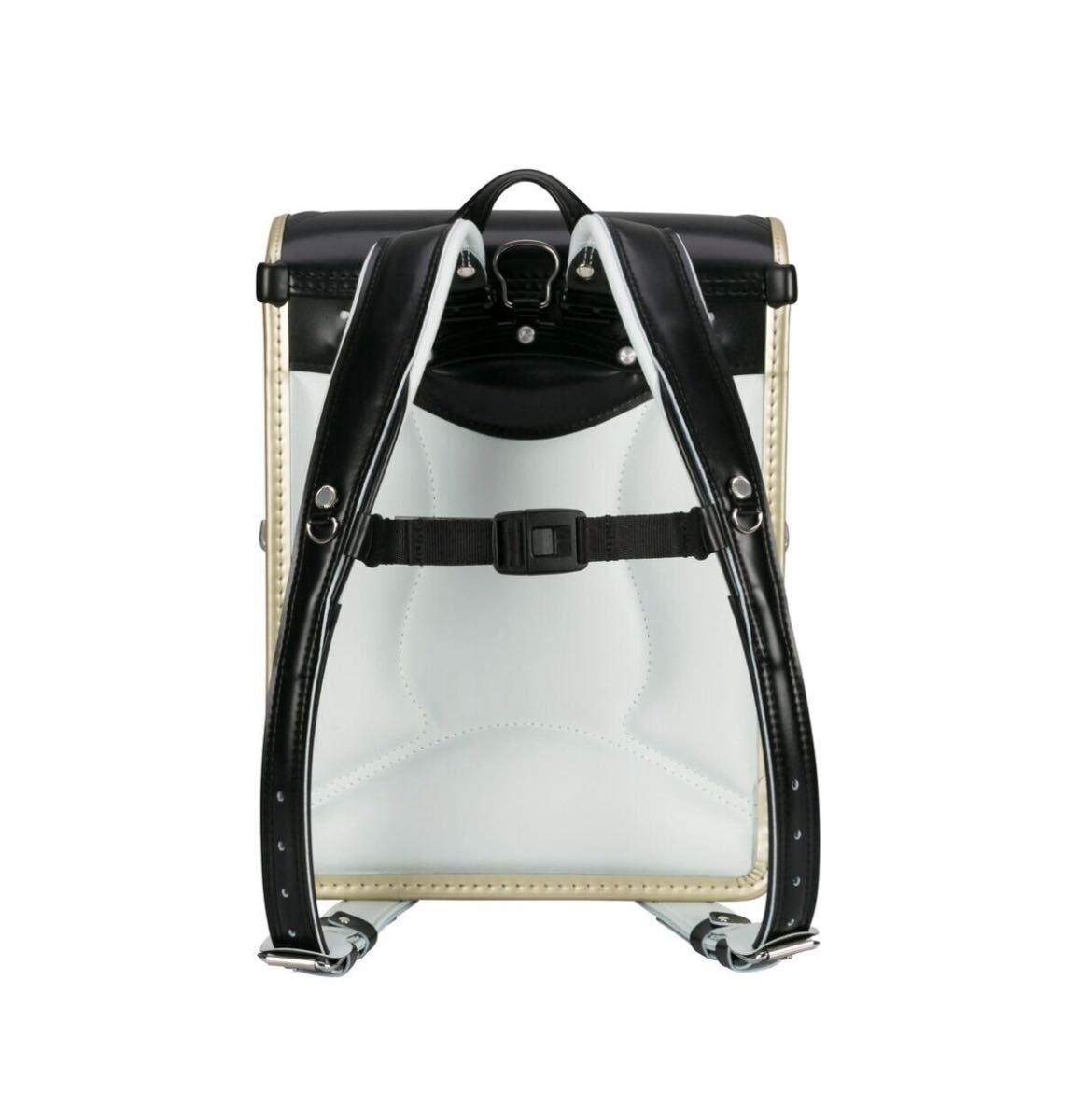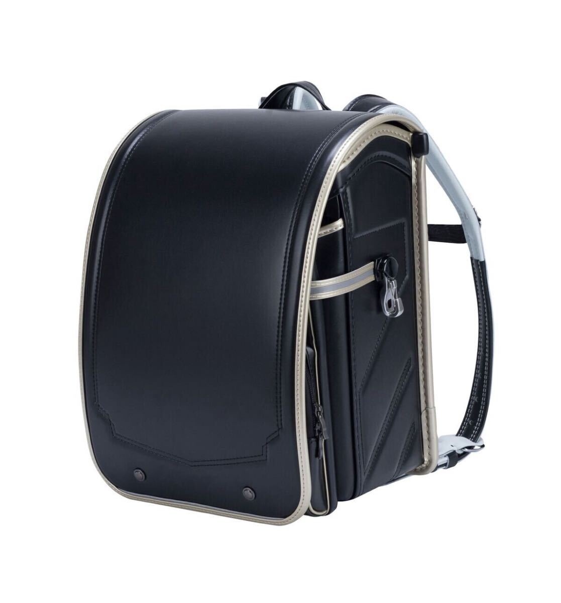 黒とゴールドのコンビネーションで、クッション性のある背面パッドと調整可能なショルダーストラップを備えたシンプルで洗練された飽きのこないデザインのランドセル。