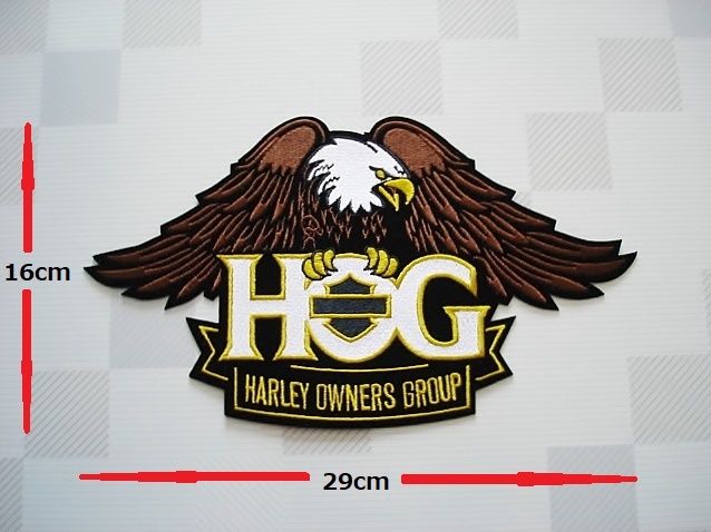 ★☆新品!特大サイズ HOG ハーレーオーナーズグループ アイロン 刺繍 ワッペン/LLサイズ 16×29cm ハーレーダビッドソン