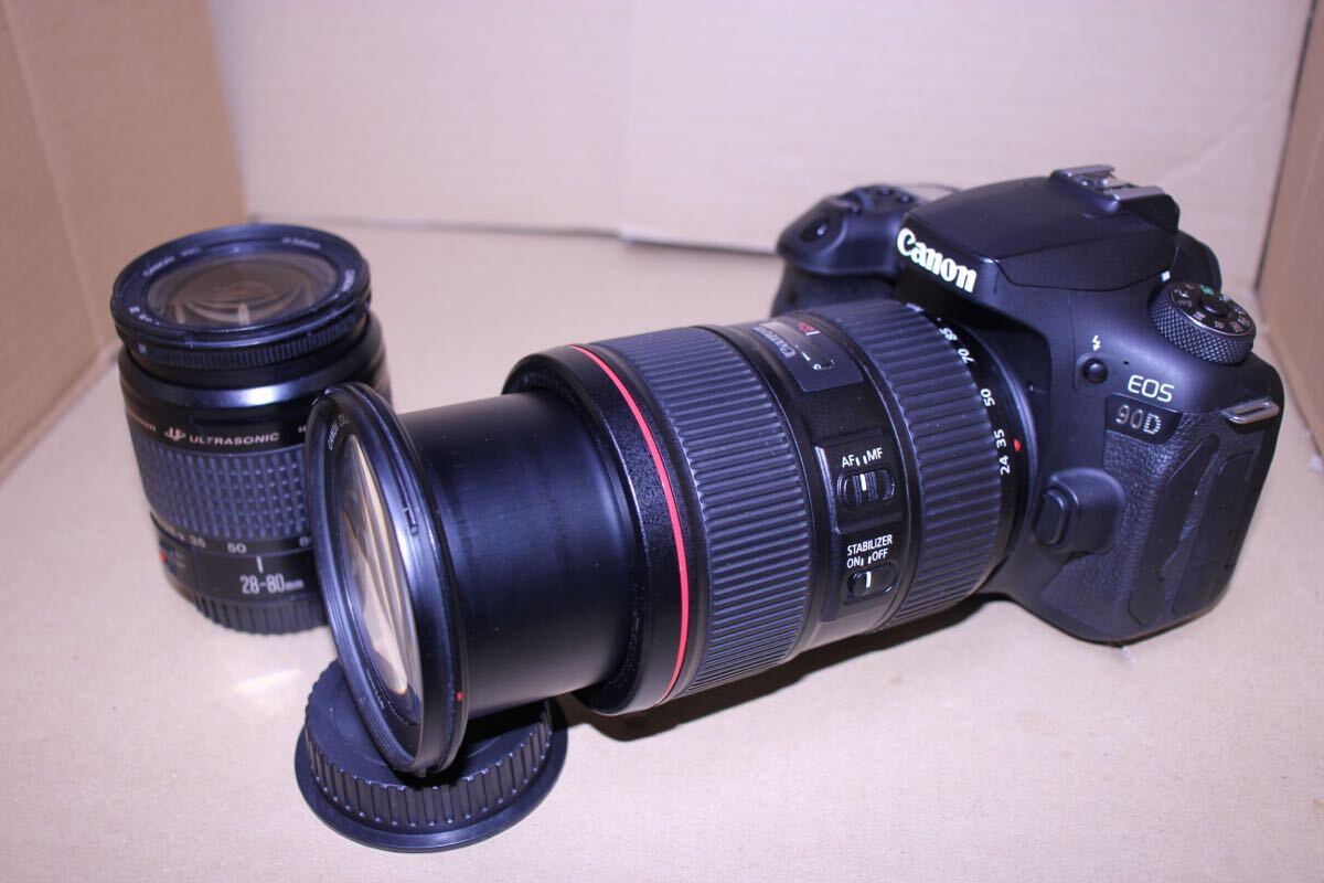 デジタル一眼レフカメラ Canon EOS 90Dダブルレンズセット/EF 28-80㎜1:3.5-5.6IV/EF24-105㎜F/4 L IS II USM☆220000