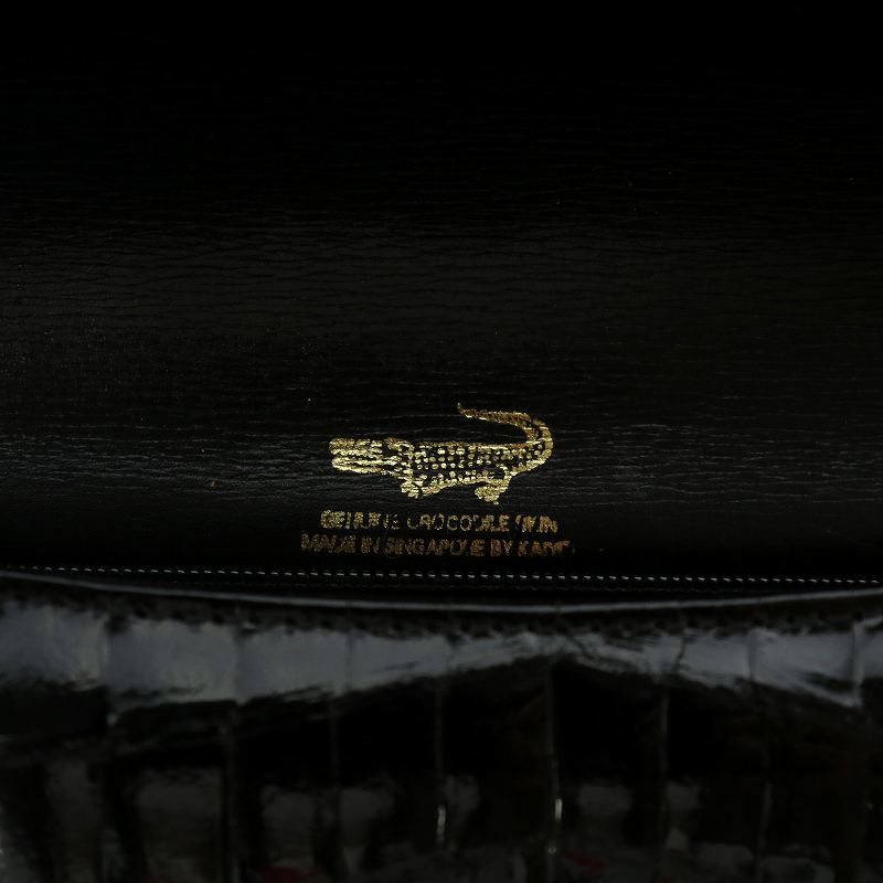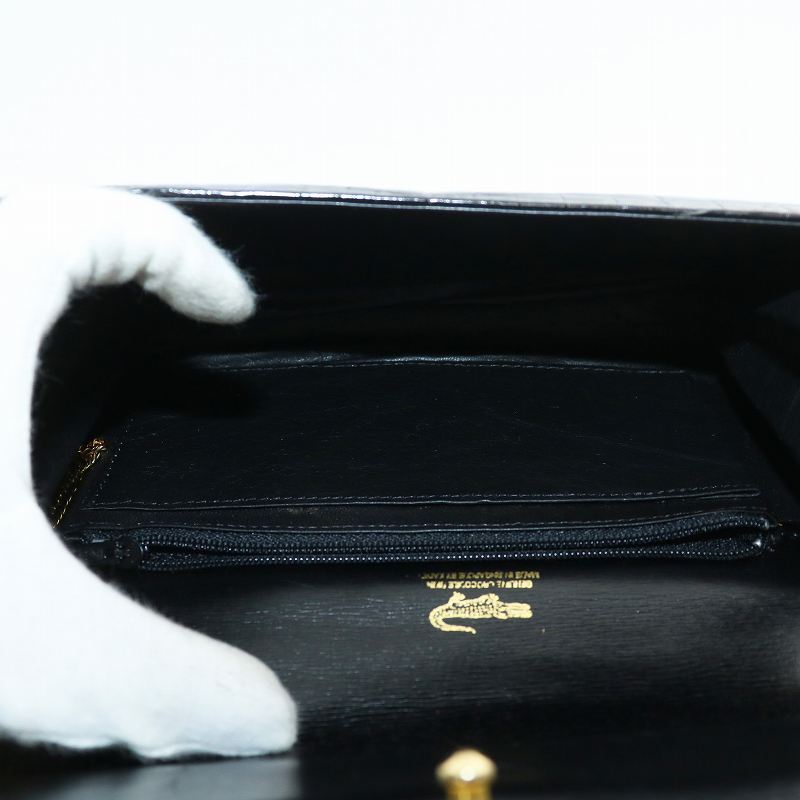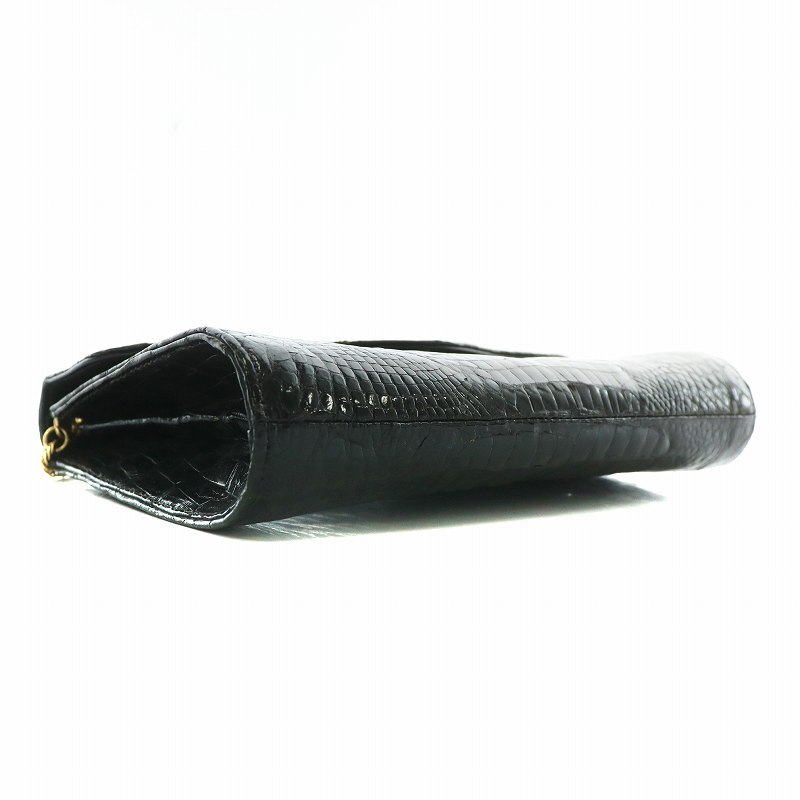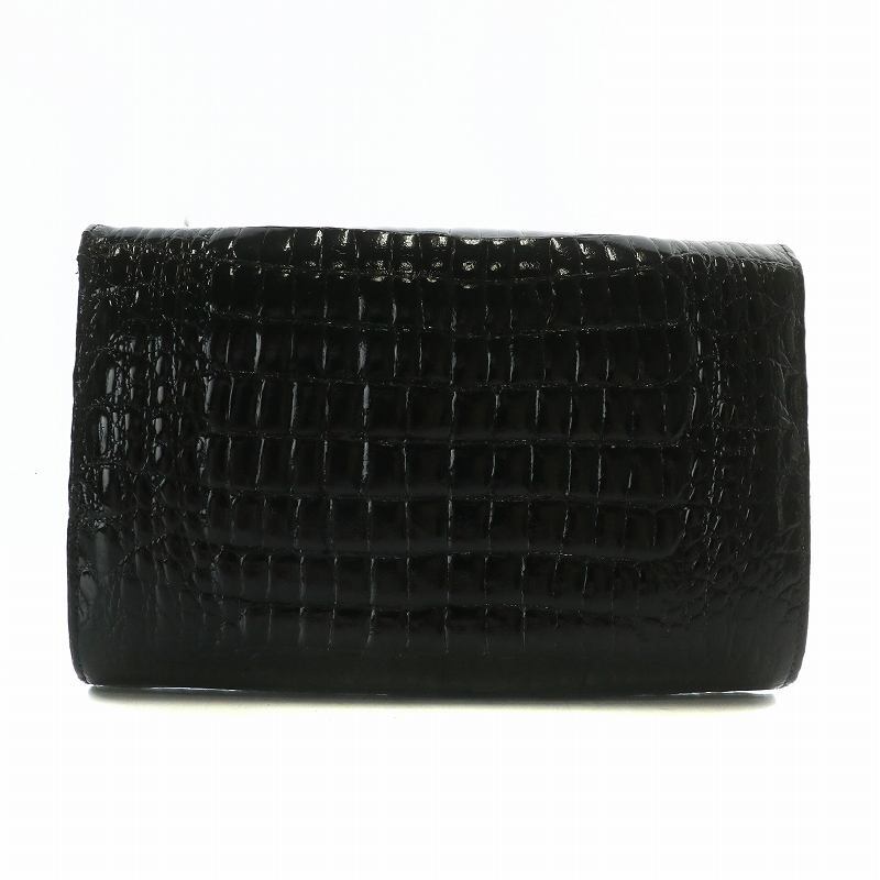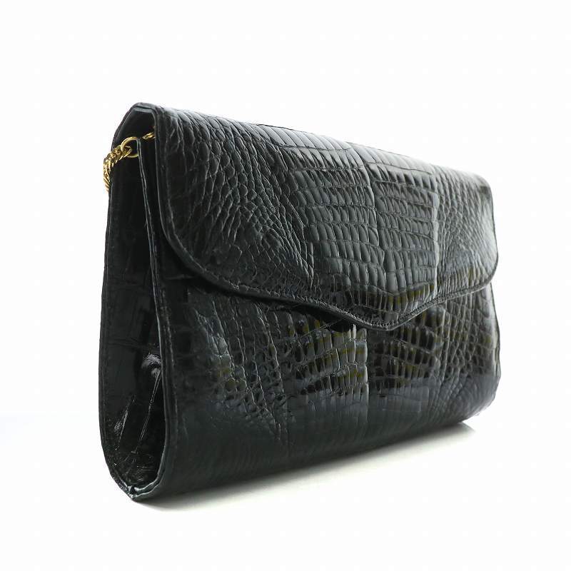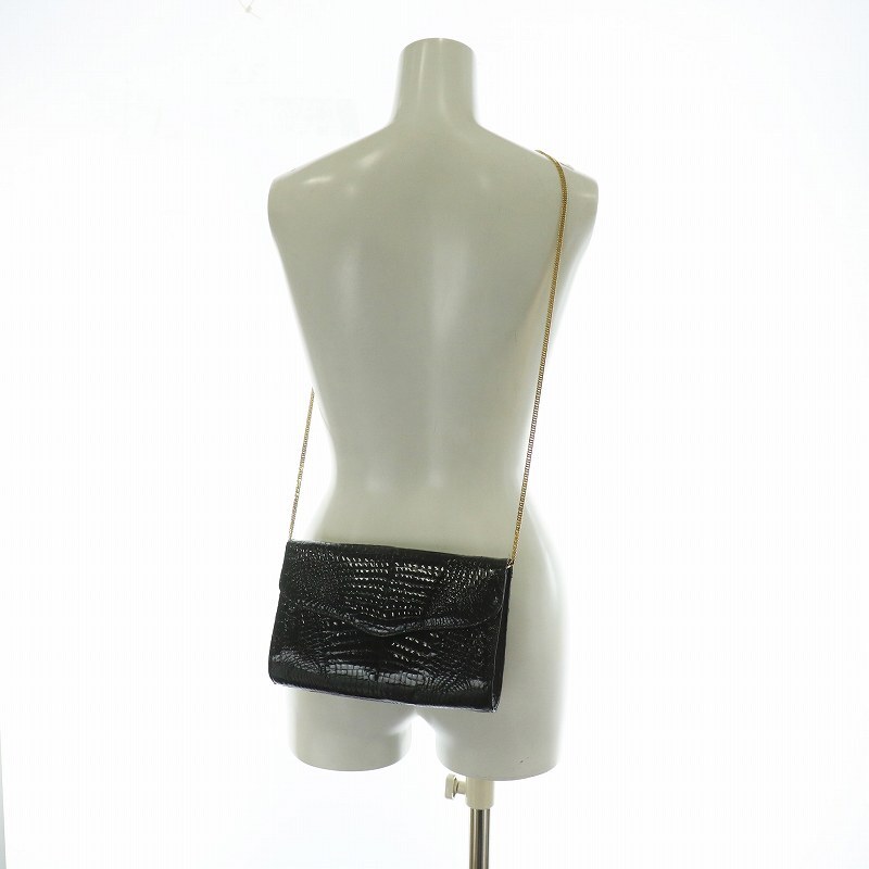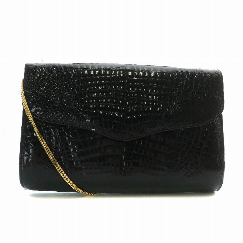 ノーブランド ショルダーバッグ シャイニークロコ ワニ革 レザー チェーン 黒 ブラック /XZ ■GY11 レディース