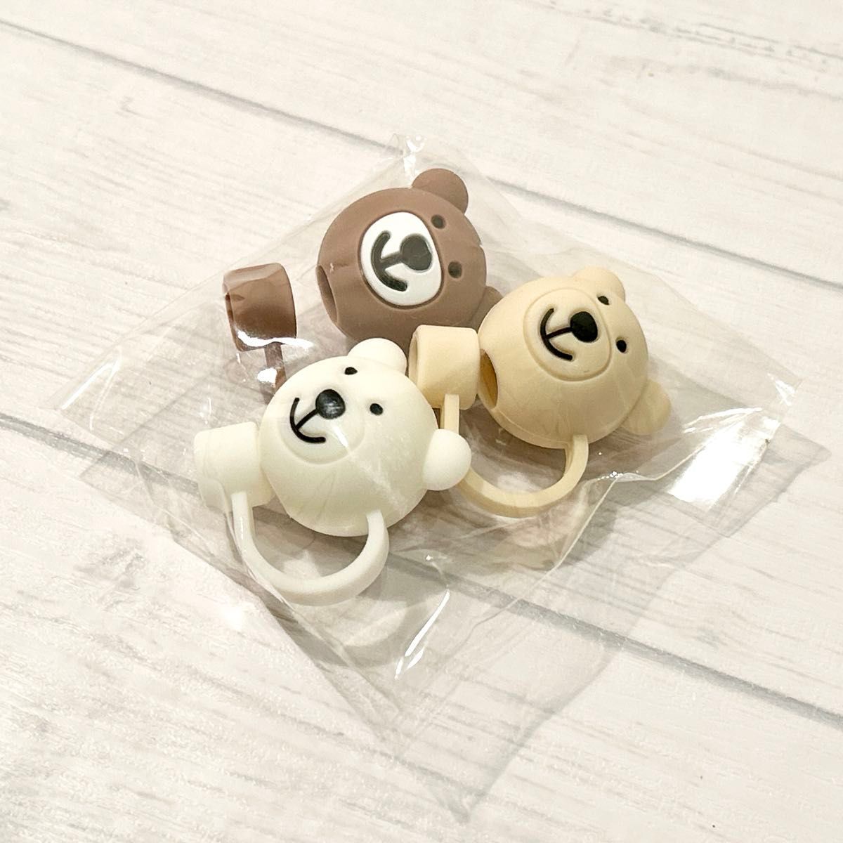 ストロー キャップ リユーザブル クマ 3個セット 清潔 安心 タンブラー 対応
