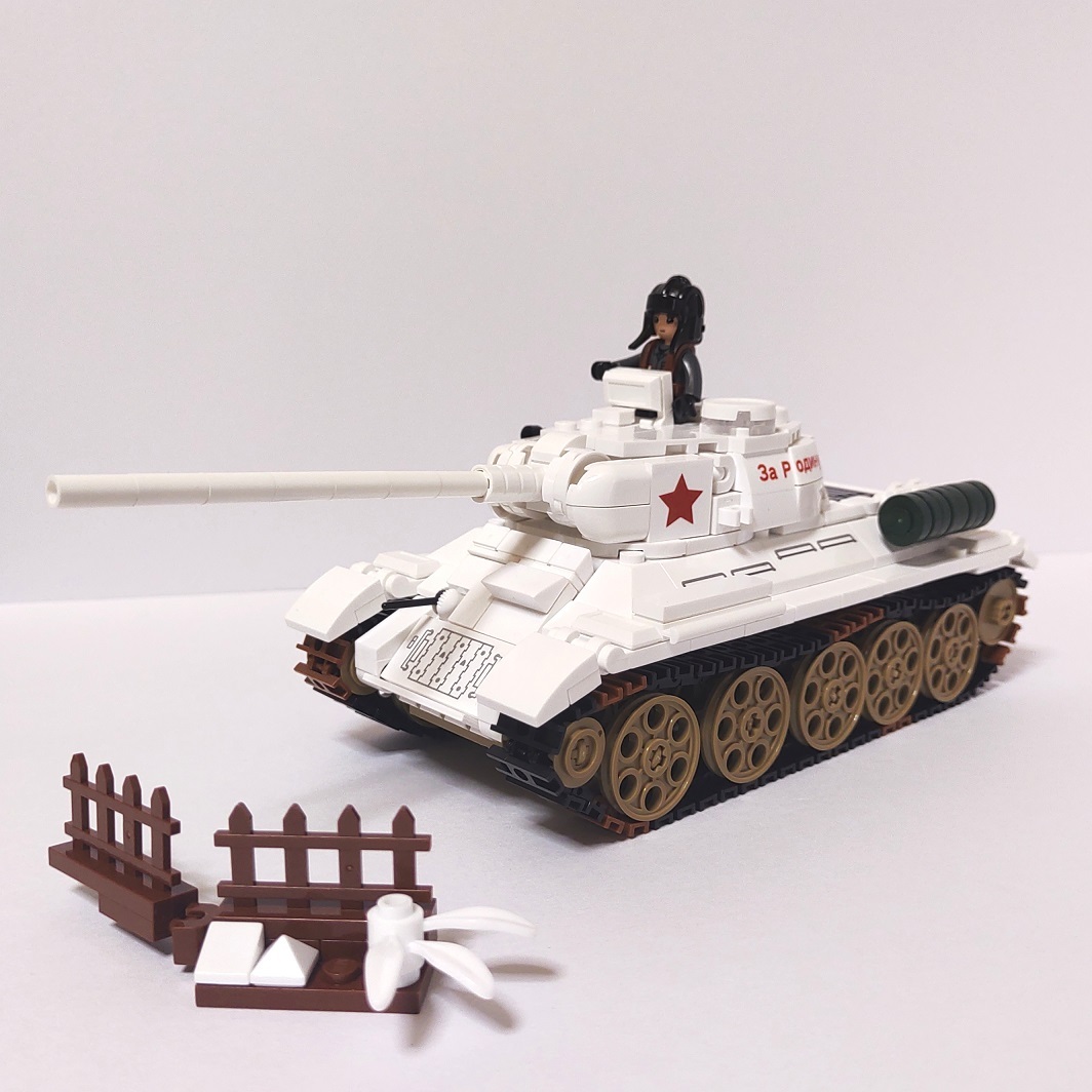 ソビエト連邦軍 T-34-85 冬季迷彩 LEGO互換のブロック玩具です。