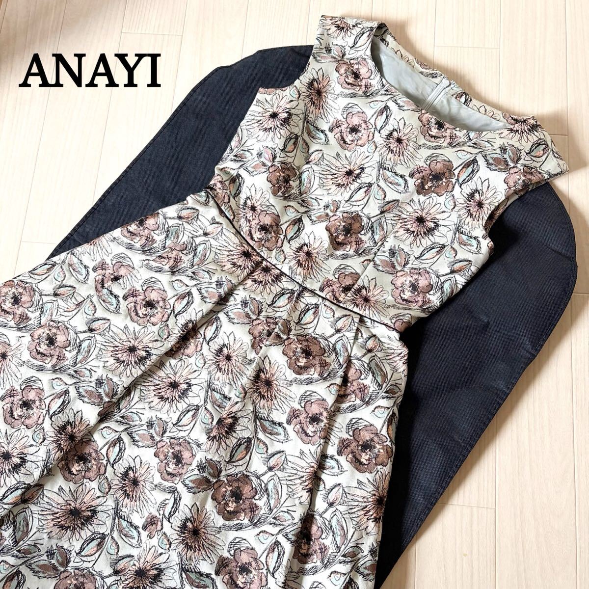 ANAYI ドローイング フラワータックワンピース ペールカラー アナイ ジャガード