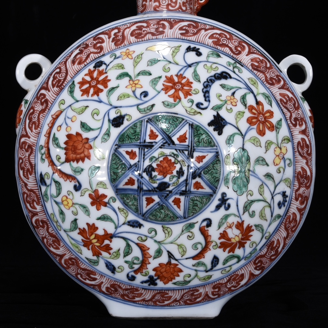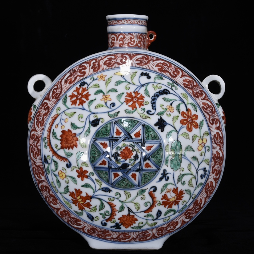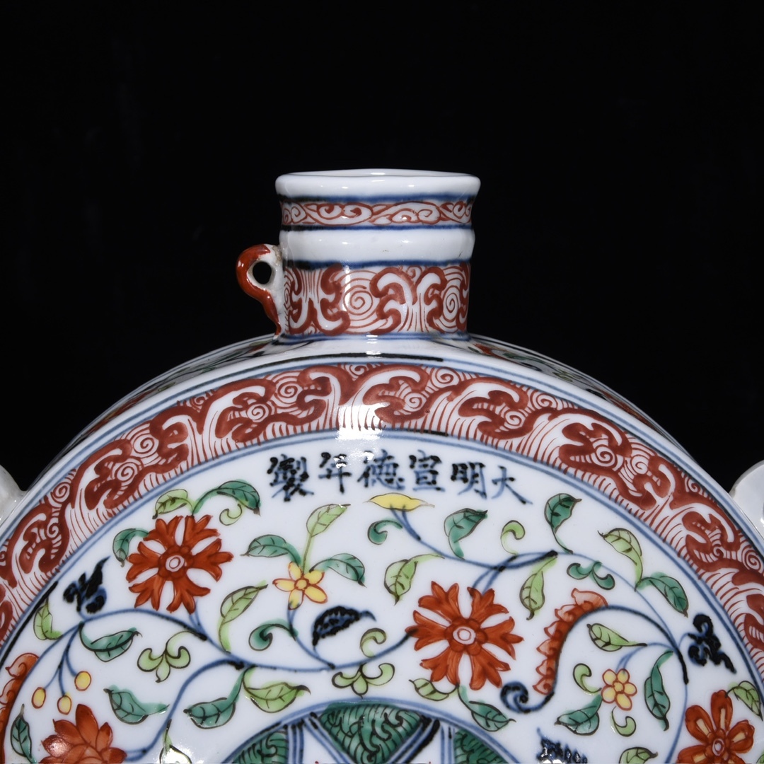 磁器 清代 康熙年制 青花 リス五彩扁瓶 文房具 唐磁 古陶磁器 陶芸 中国古美術 古賞物 古置物 唐物 旧蔵 S76