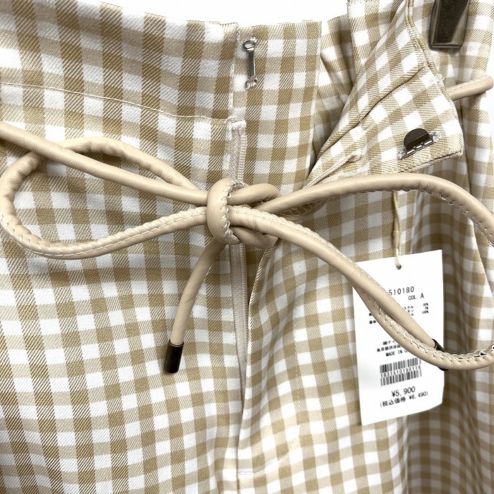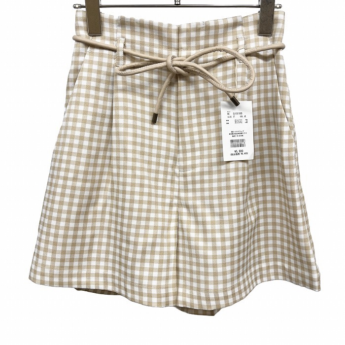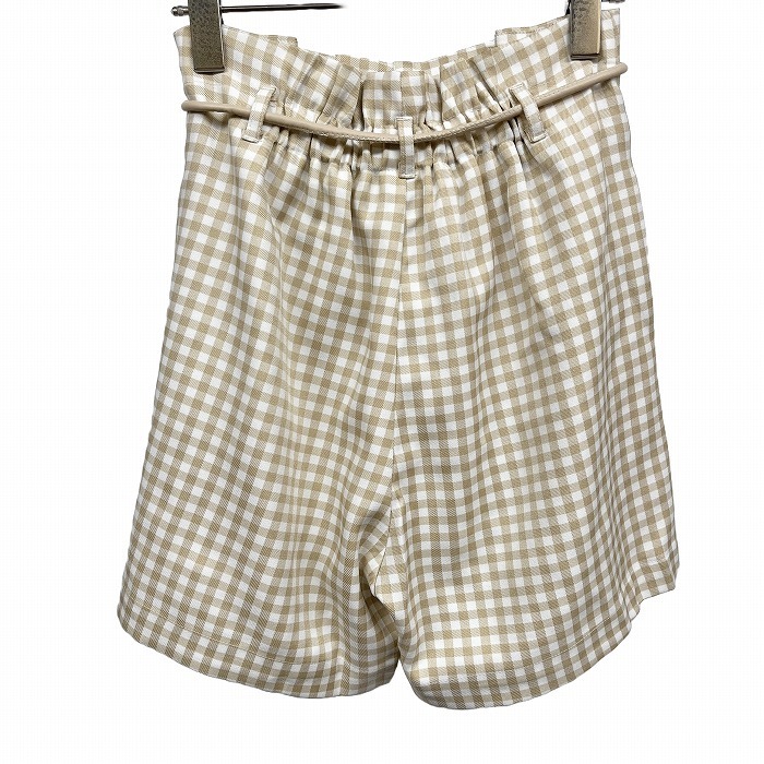 商品タイトル | 【新品】NICE CLAUP キュロットパンツ ショートパンツ 紐ベルト付き チェック ウエストゴム 裏地付き ポリなど F ベージュ レディース |