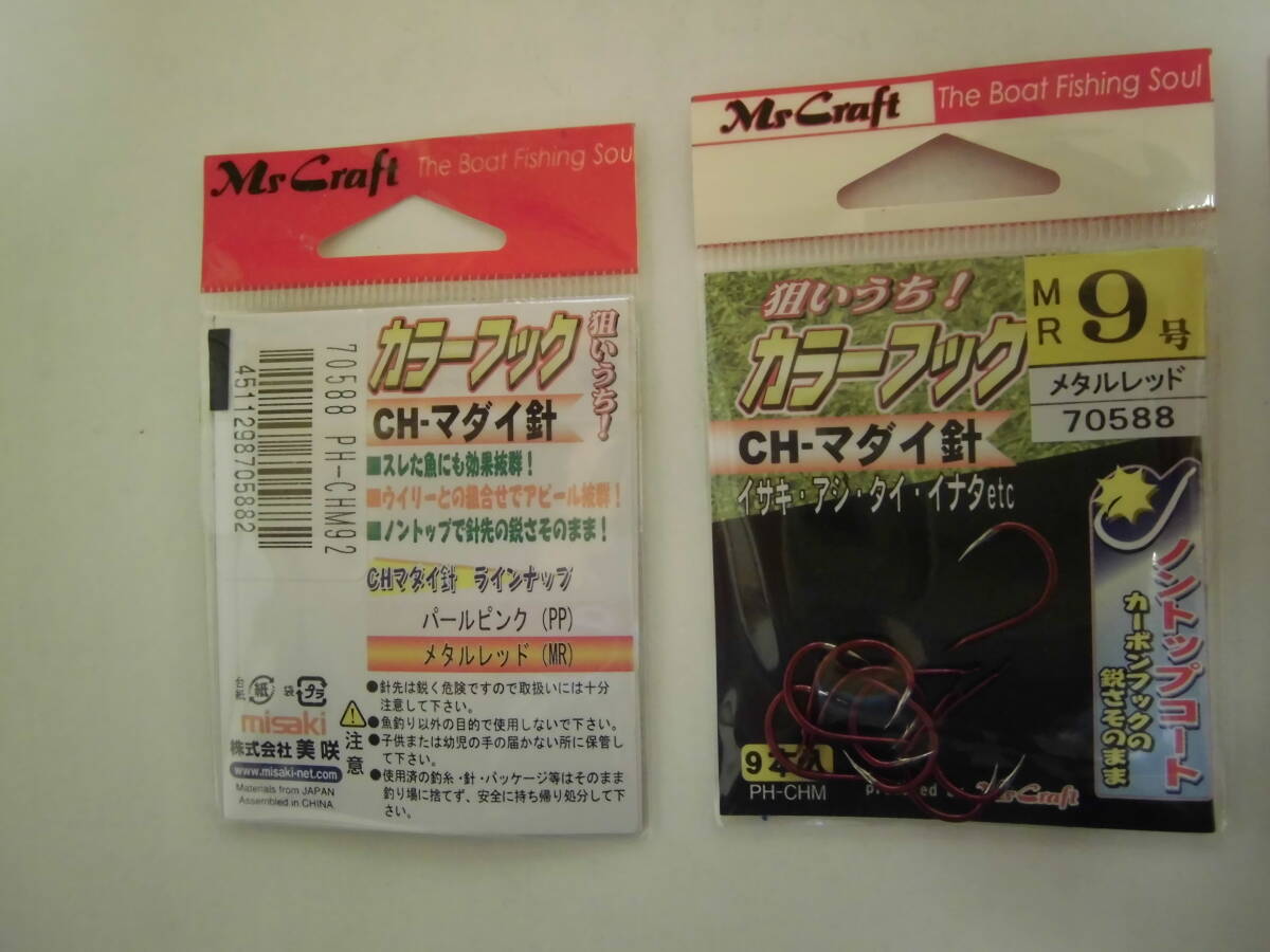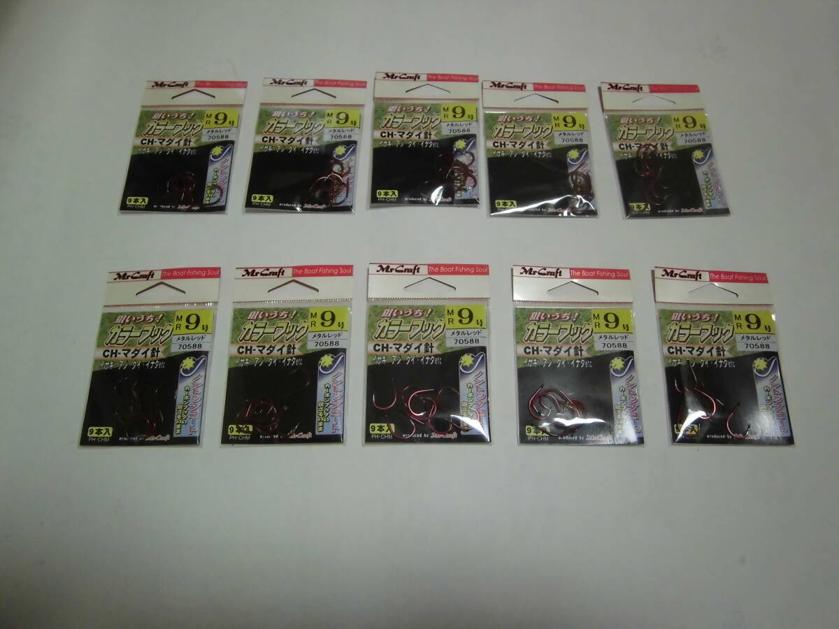 ミサキ カラーフック CH マダイ針 9号 9本入り10袋 カーボンフック ノントップコート 真鯛 イナダ イサキ アジ