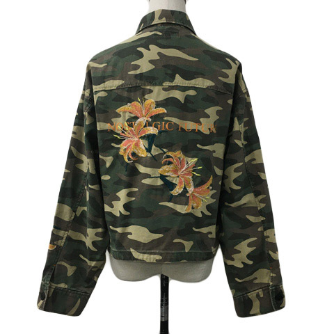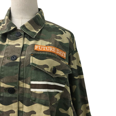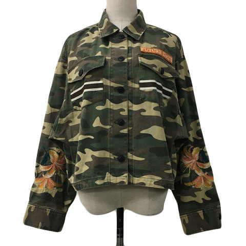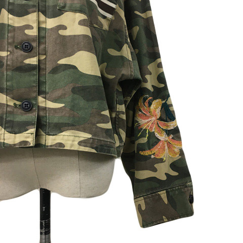 マウジー ジャケット ブルゾン ミリタリー スタンダード 迷彩 カモフラ 刺繍 プリント ロゴ 長袖 F 緑 茶 グリーン ブラウン レディース