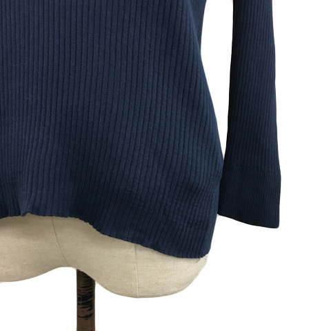 23区 オンワード樫山 セーター ニット サマー プルオーバー Vネック リブ レイヤード風 付け衿 ストライプ 七分袖 38 紺 白