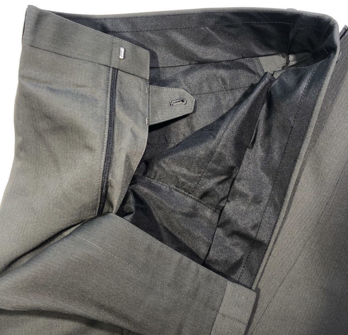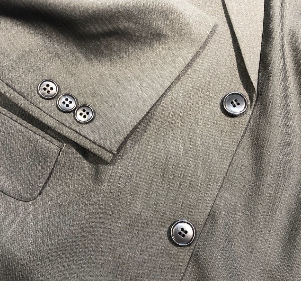 お色は人気のグレー。とてもキレイな色目に仕上がっています。これからの季節はジャケットのみスラックスのみでコーディネートしても良いと思います。生地はふわさらですが、とても丈夫で大事に着用頂ければ軽く5年は持ちます。