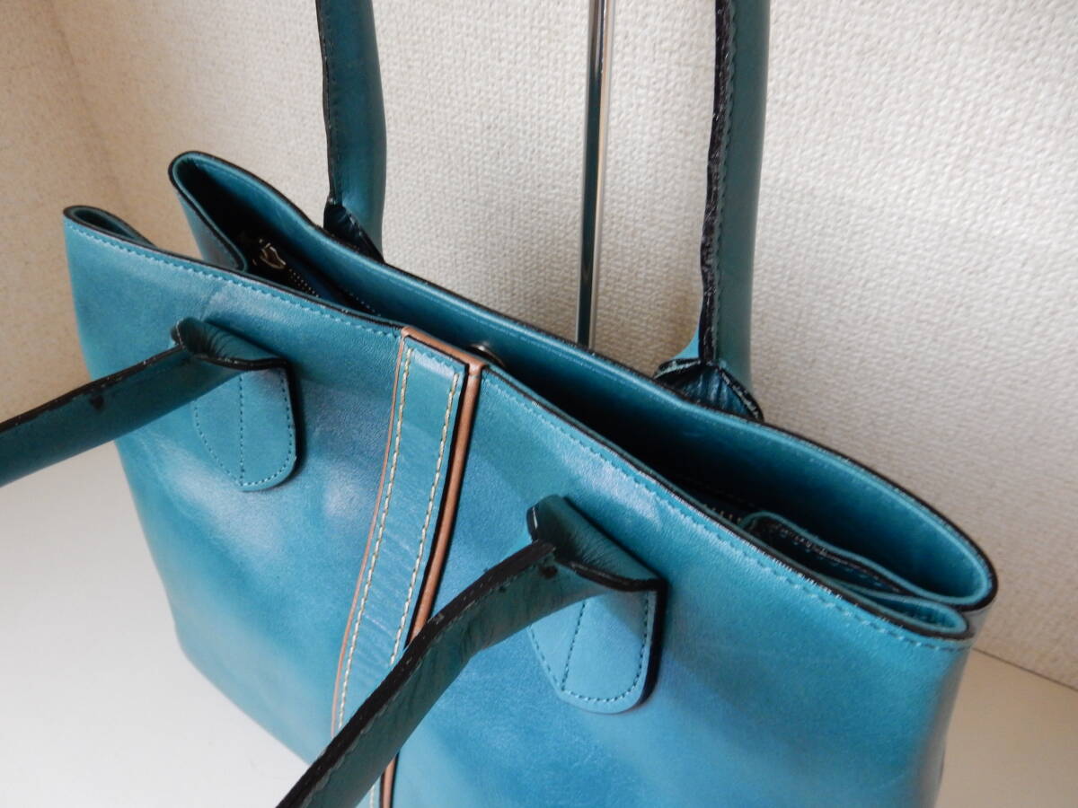 メイドインジャパン☆本革☆B5対応☆6ポケット☆肩掛けOK☆トートバッグ ターコイズブルー