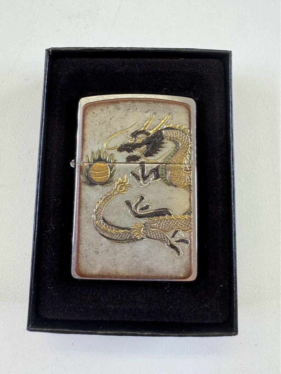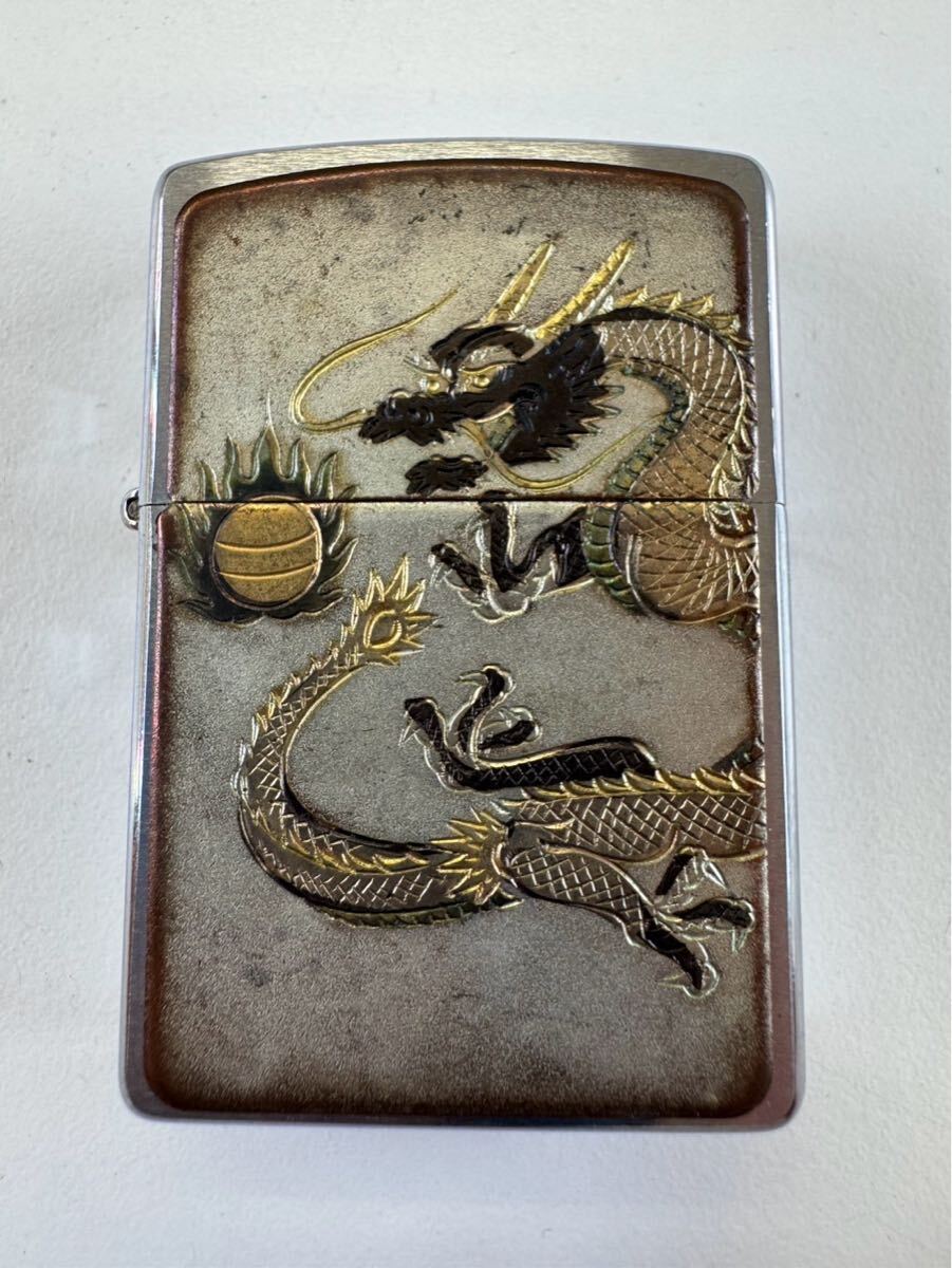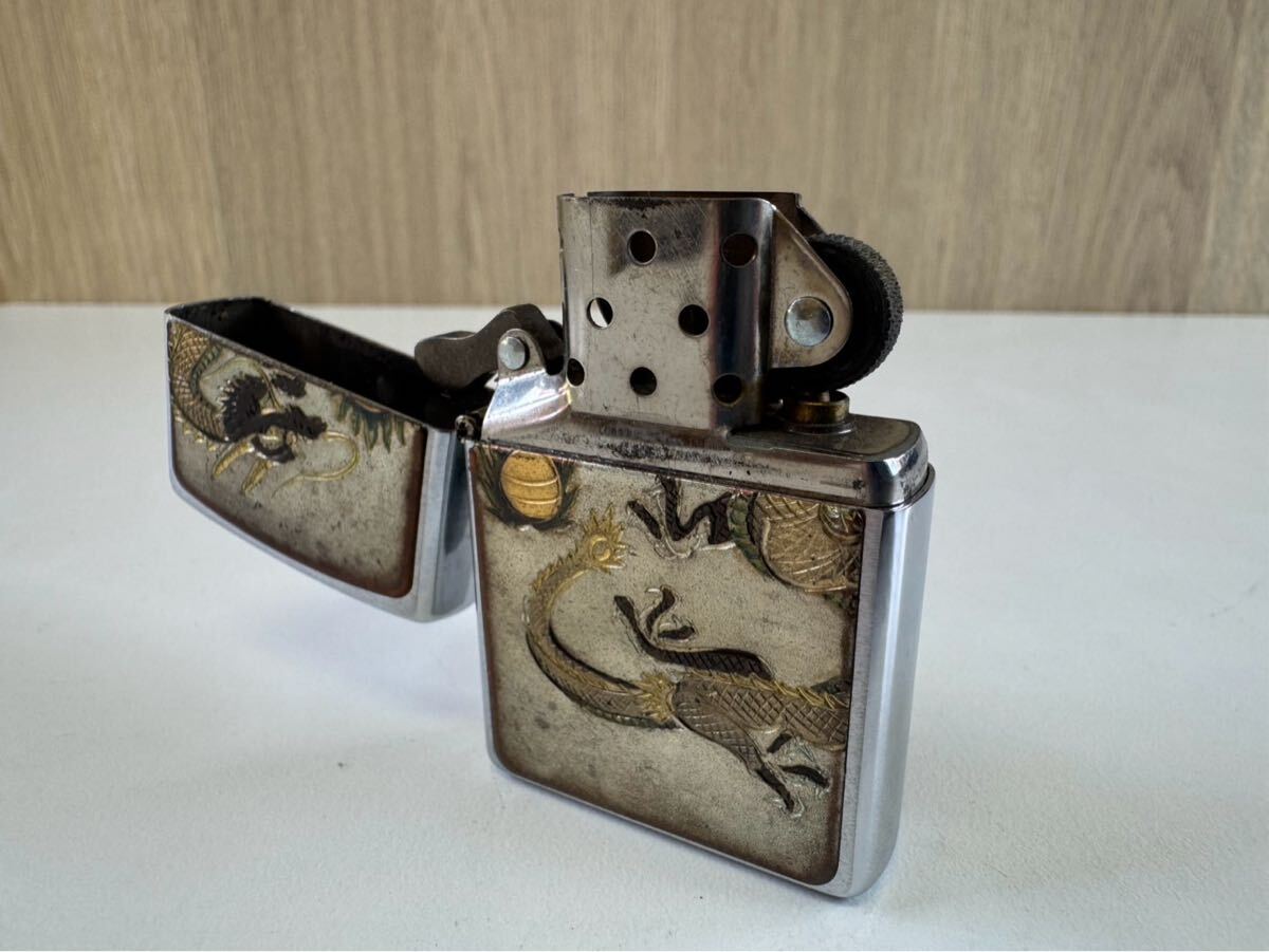 Zippoジッポ ライター 龍ドラゴン 和柄 F 07シルバー USA製 オイルライター 喫煙グッズ 現状品