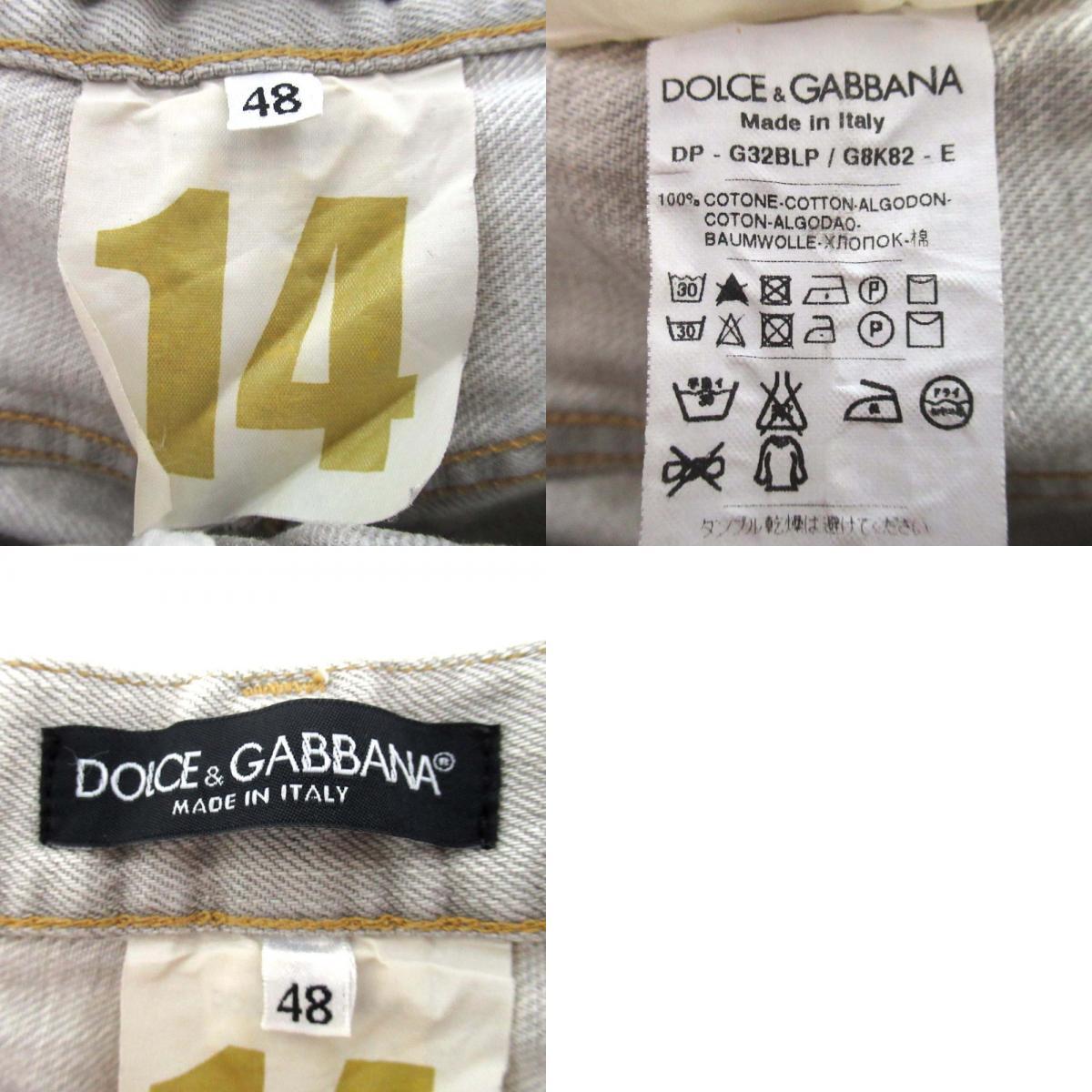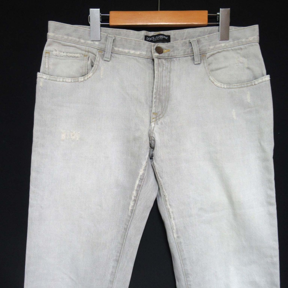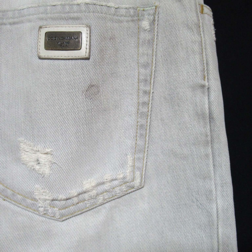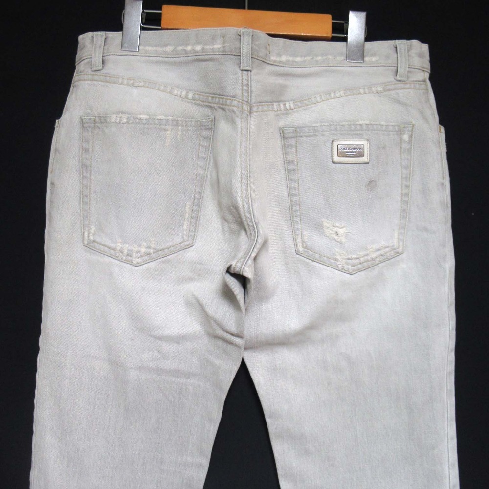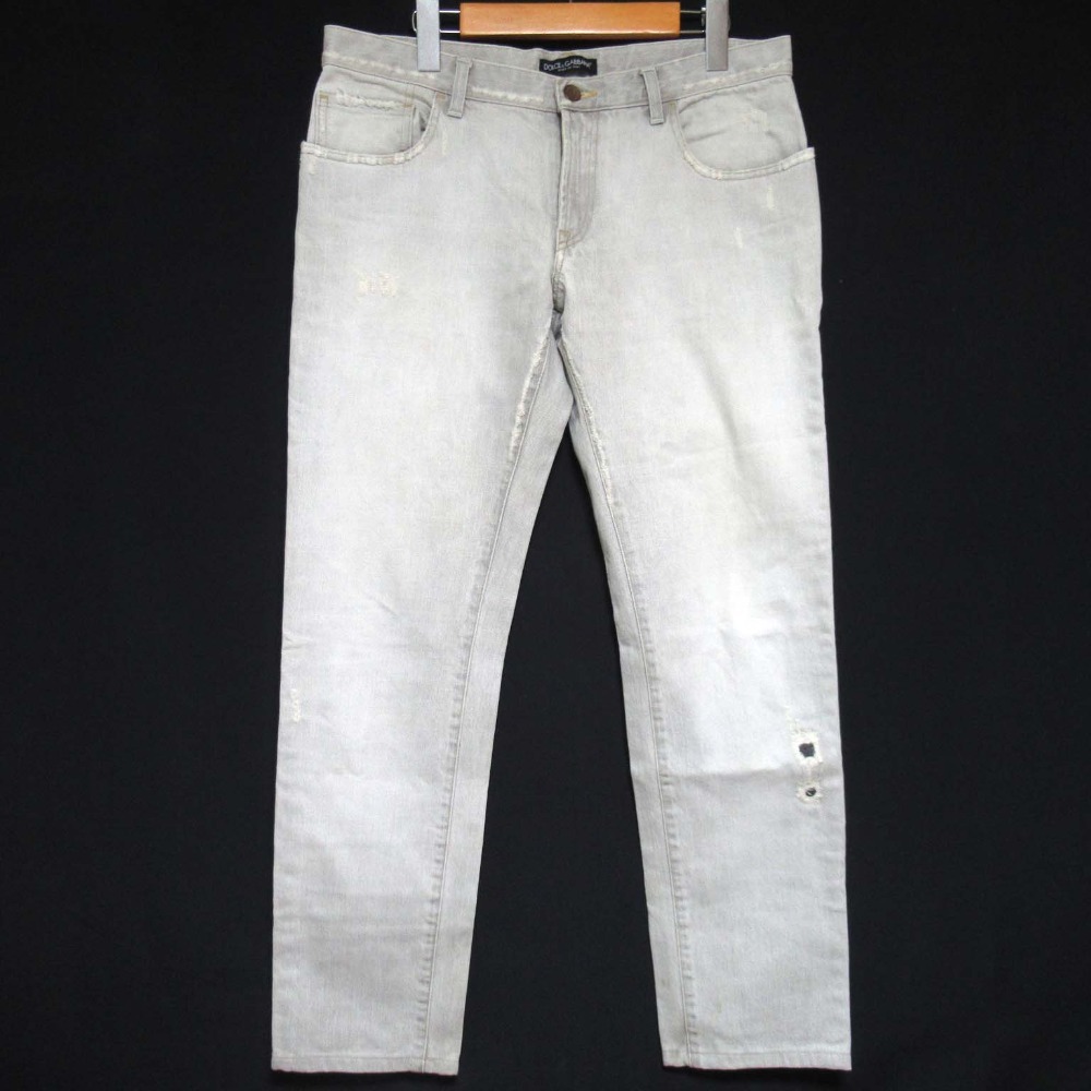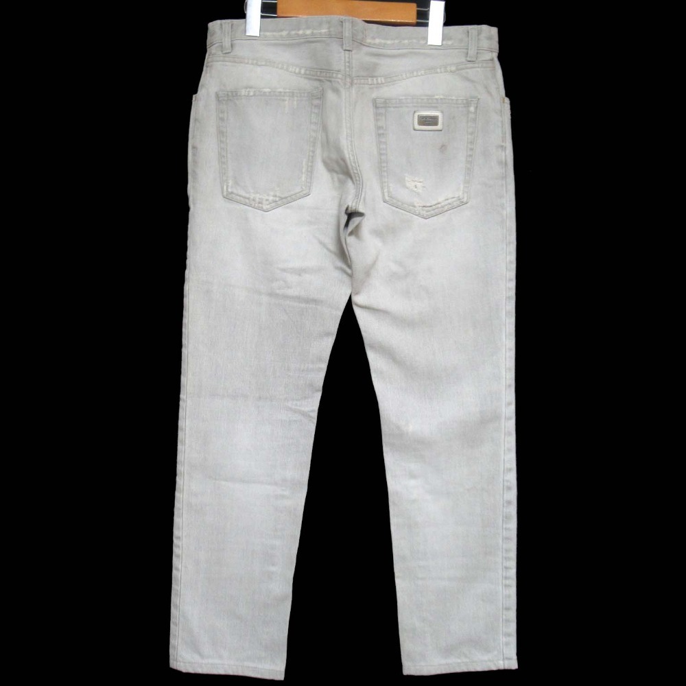 良品 DOLCE&GABBANA ドルチェ&ガッバーナ 14 ダメージ加工 プレート デニムパンツ ジーンズ 48サイズ ライトグレー