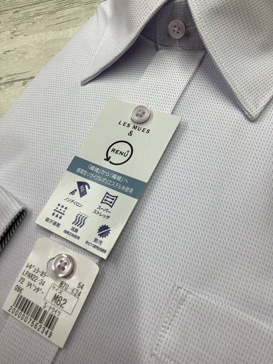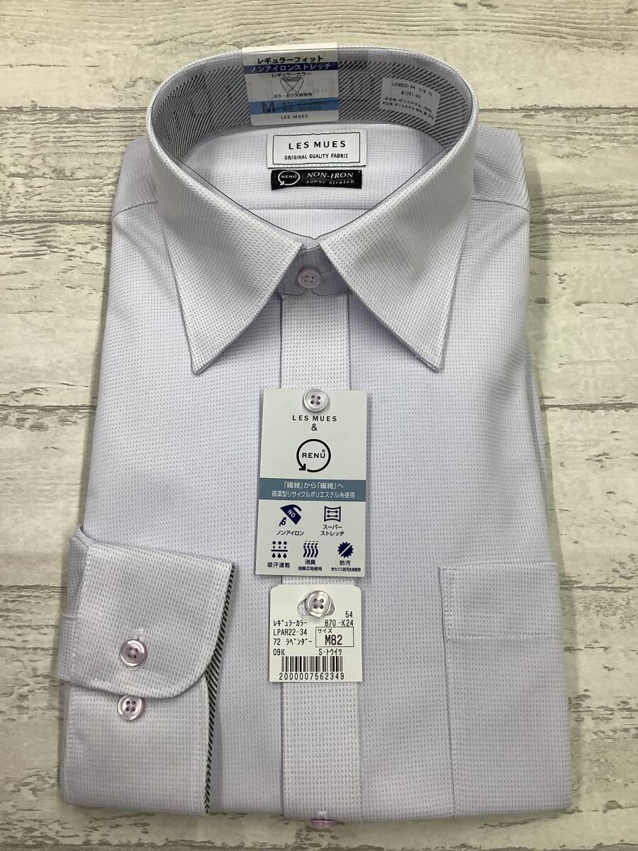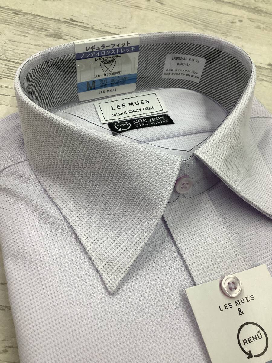39-82 長袖Mサイズ ★レギュラーカラードレスシャツ ノンアイロン ポリエステル100% ★スーパーストレッチ素材  ★ラベンダー色