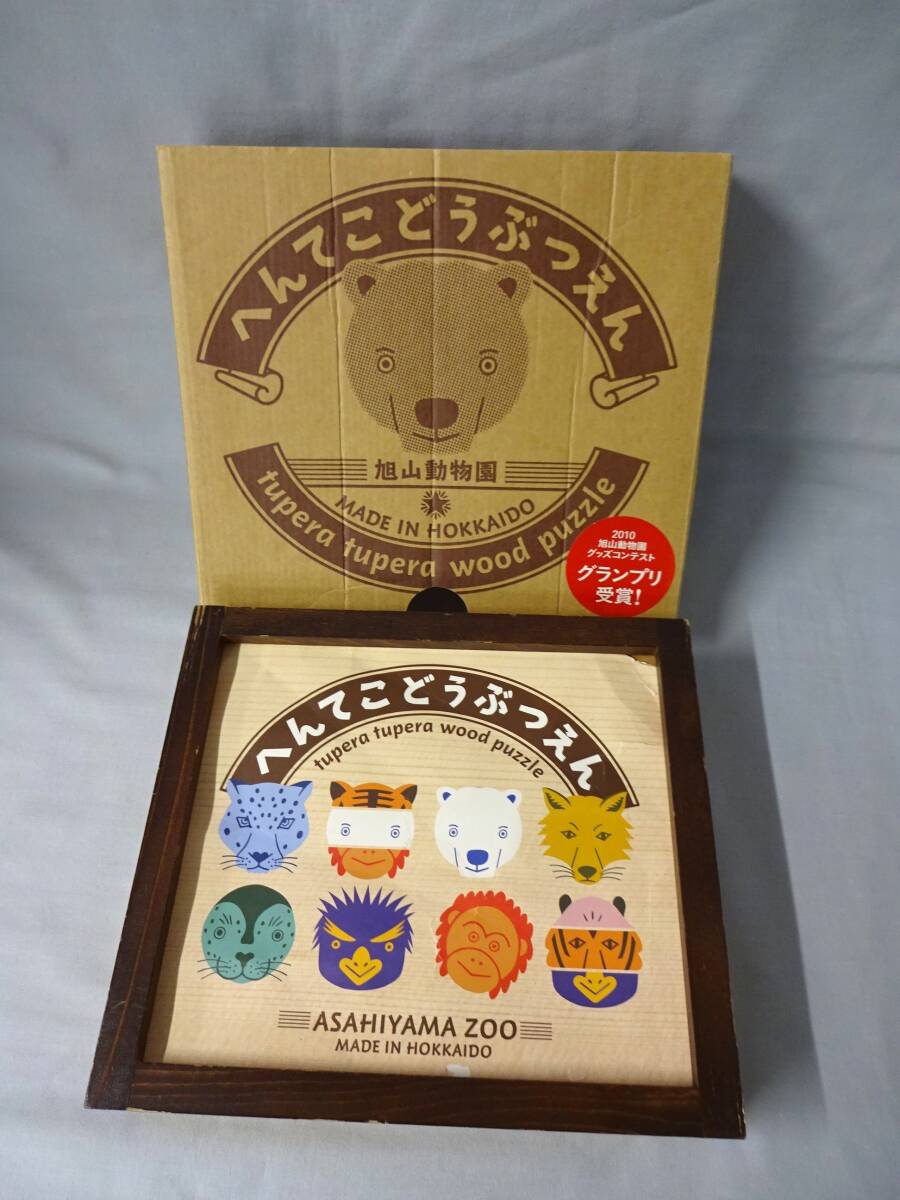 旭山動物園にいる8種類の動物たちの顔が3分割され、それぞれの動物の顔と名前のパーツをへんてこに組み合わせて、へんてこな動物をつくる木製パズルです。 この商品は絵本やワークショップなどで現在大活躍中のtupera tuperaさんとのコラボレーションで生まれました。 そして「へんてこどうぶつえん」は旭川商工会議所が主催の「2010旭山動物園グッズコンテスト」でグランプリを受賞。