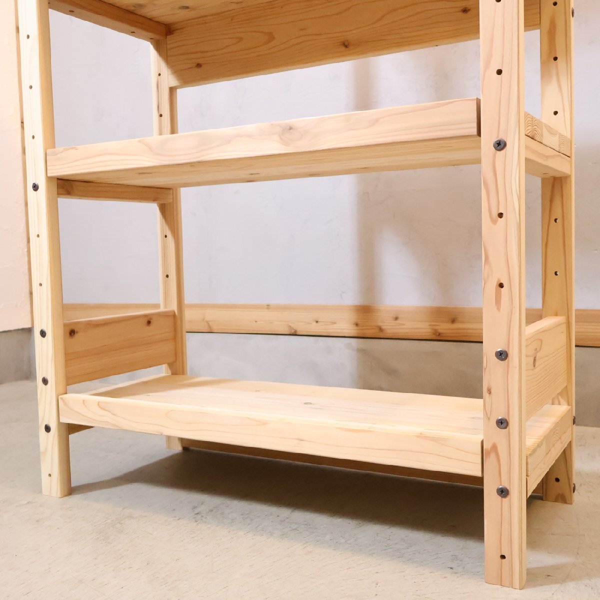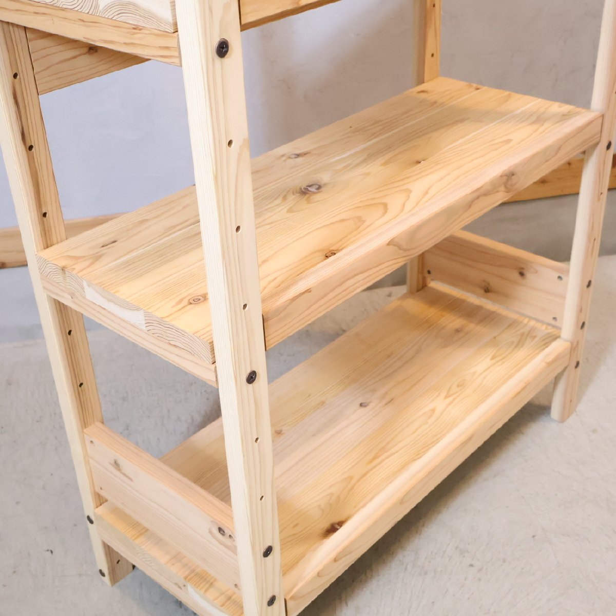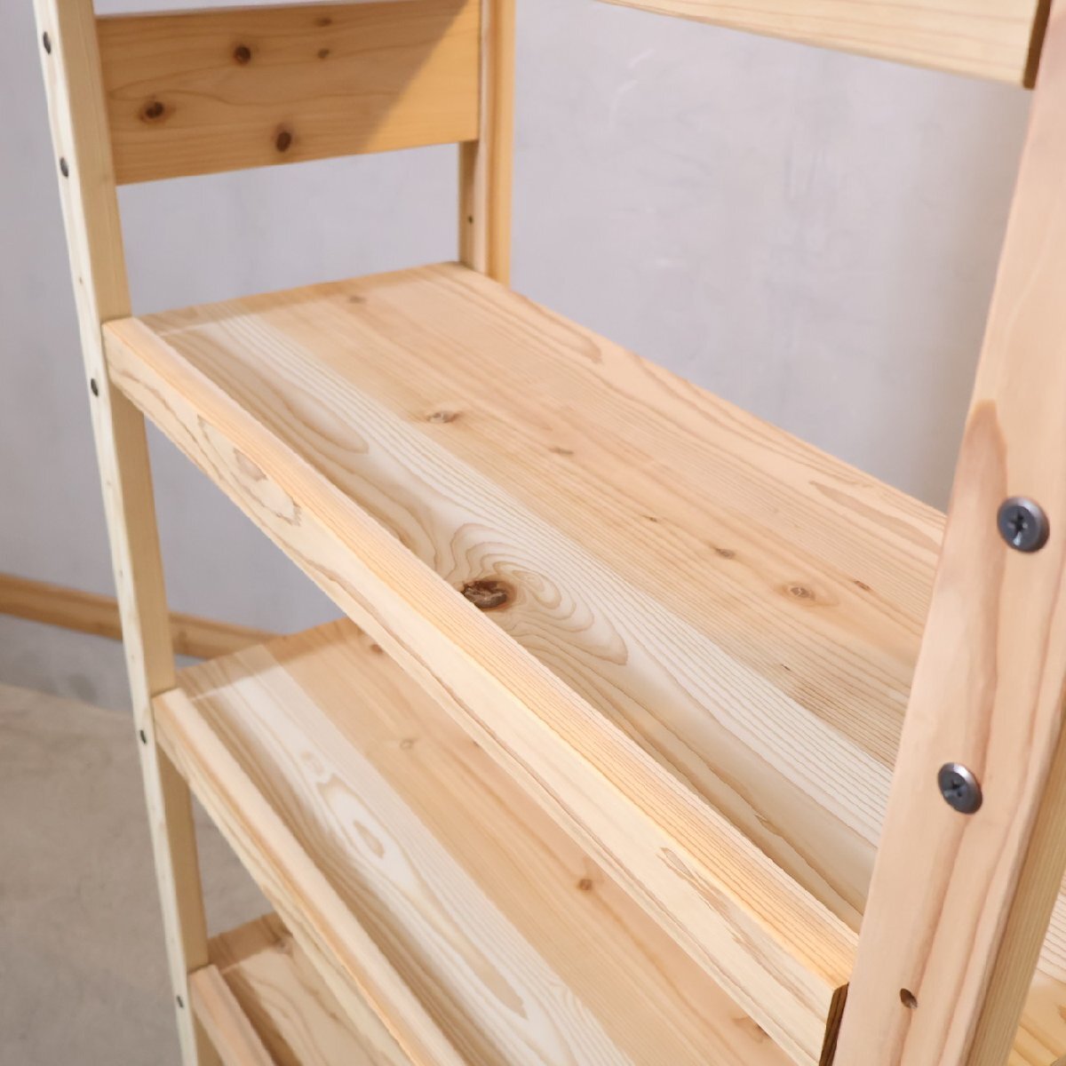 国産杉の味わい深い素材感が全面に活かした素朴な味わいと頑丈さが魅力の収納ラックです。