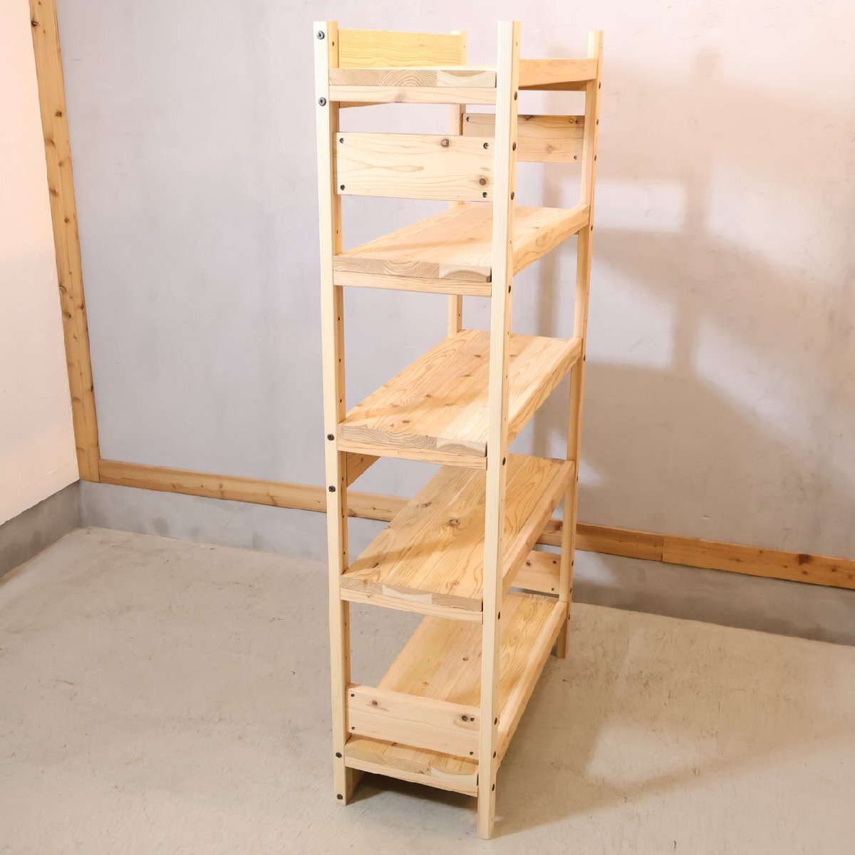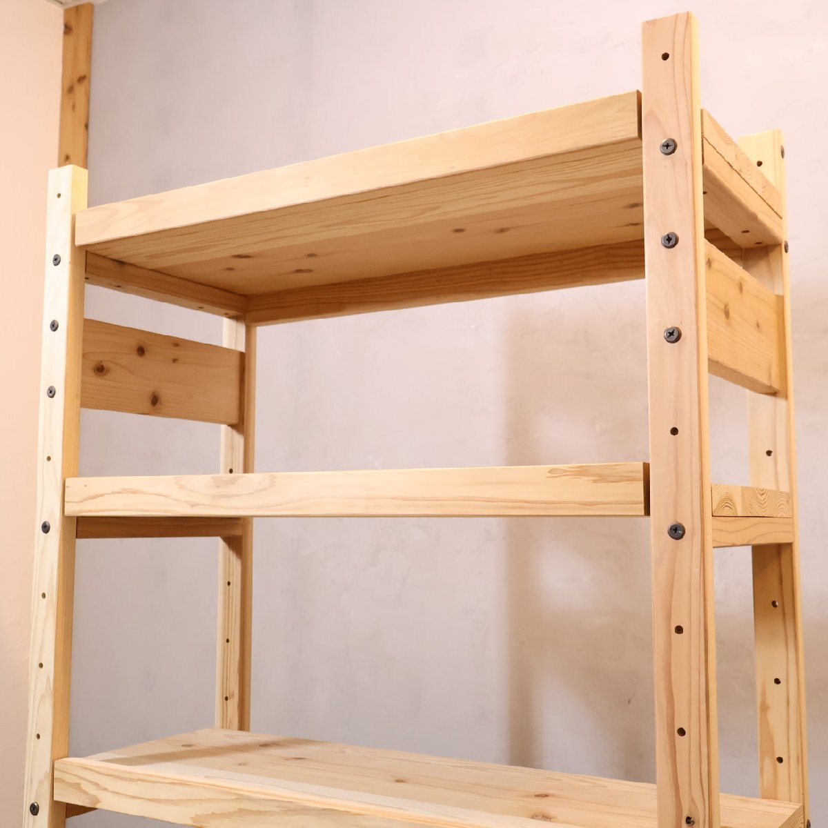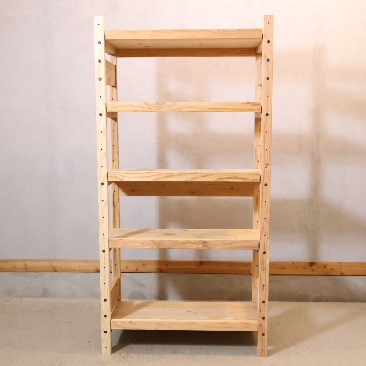 国産杉の味わい深い素材感が全面に活かした素朴な味わいと頑丈さが魅力の収納ラックです。