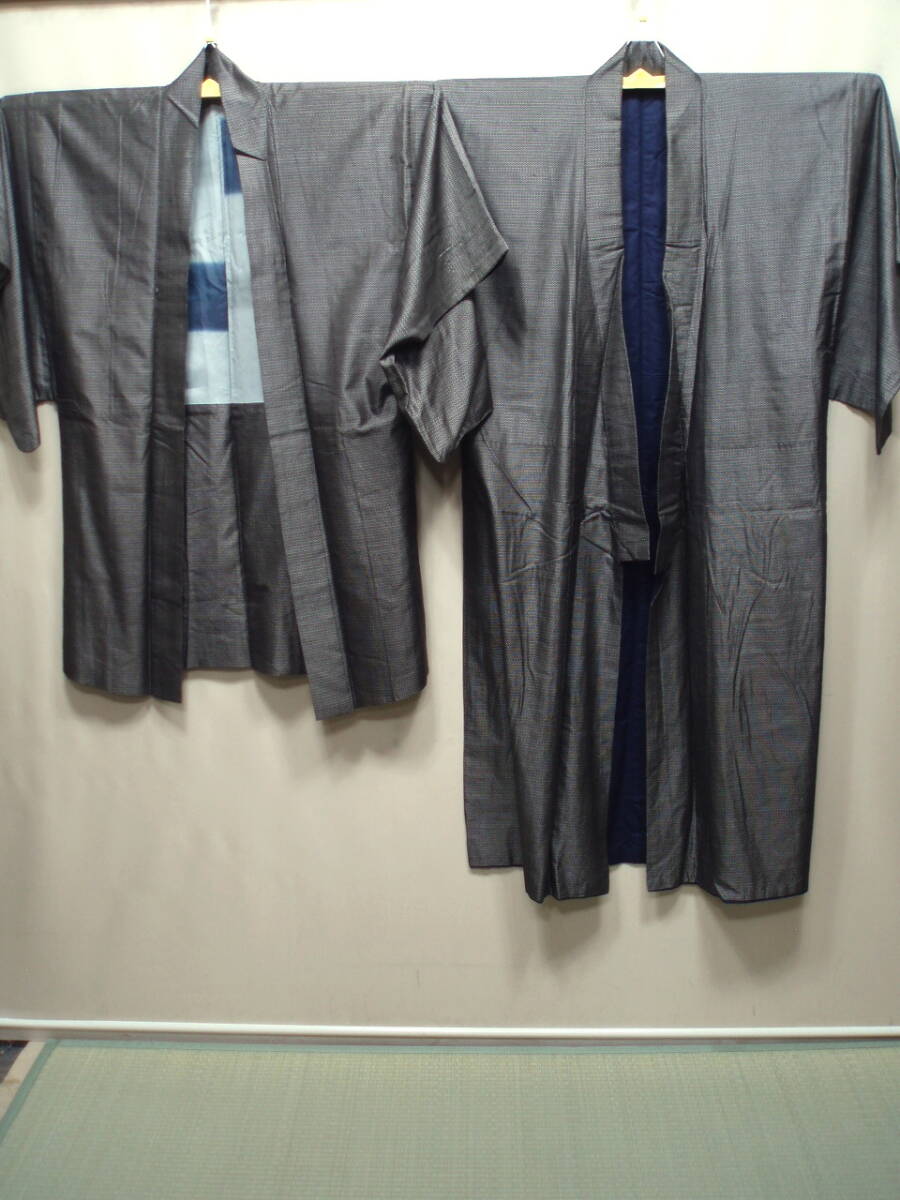 "" "M55401【生地取り用 リメイク用 着用用 正絹 泥大島】男 着物 羽織 アンサンブル " |