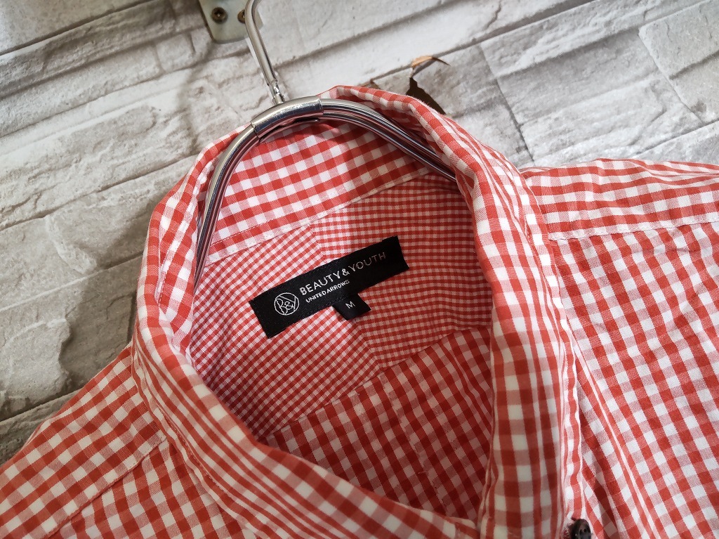 men's I760 BEAUTY&YOUTH UNITED ARROWS ビューティーアンドユース ギンガムチェック 7分丈 シャツ M レッド系 ネコポス発送可