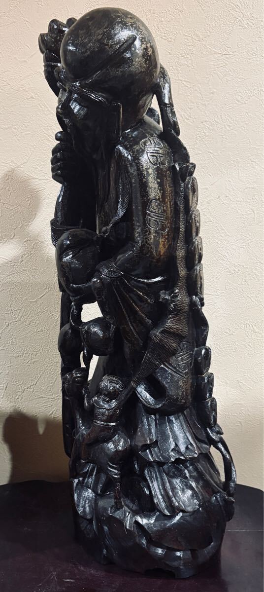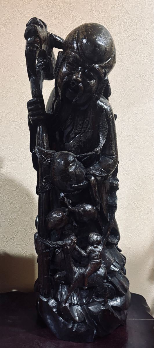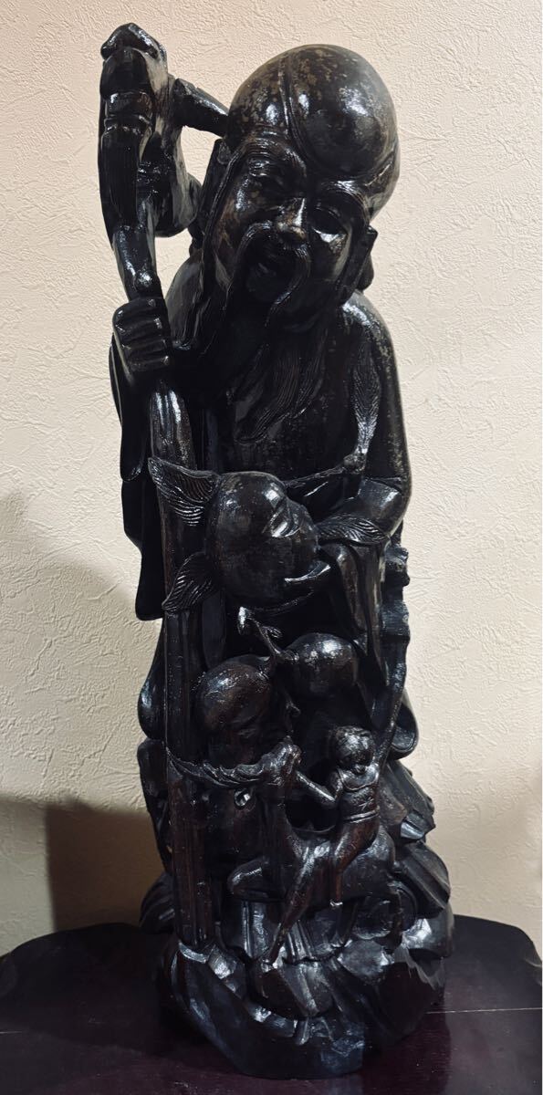 開運縁起物 「七福神 の福禄寿 桃仙人 」木彫像 高さ約60㎝