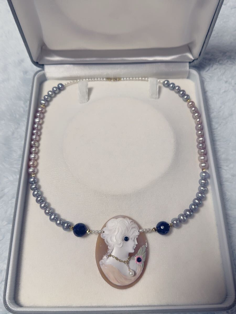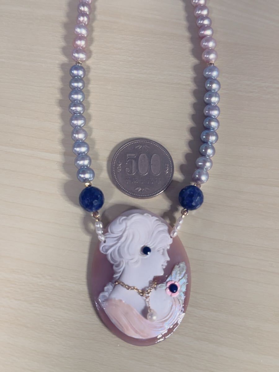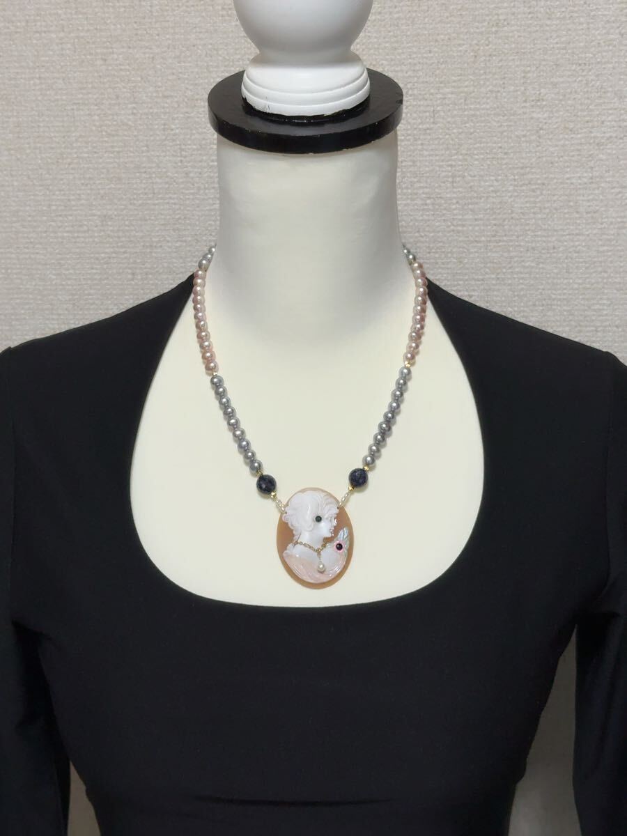 K18金パール&シェルカメオコンビデザインネックレス