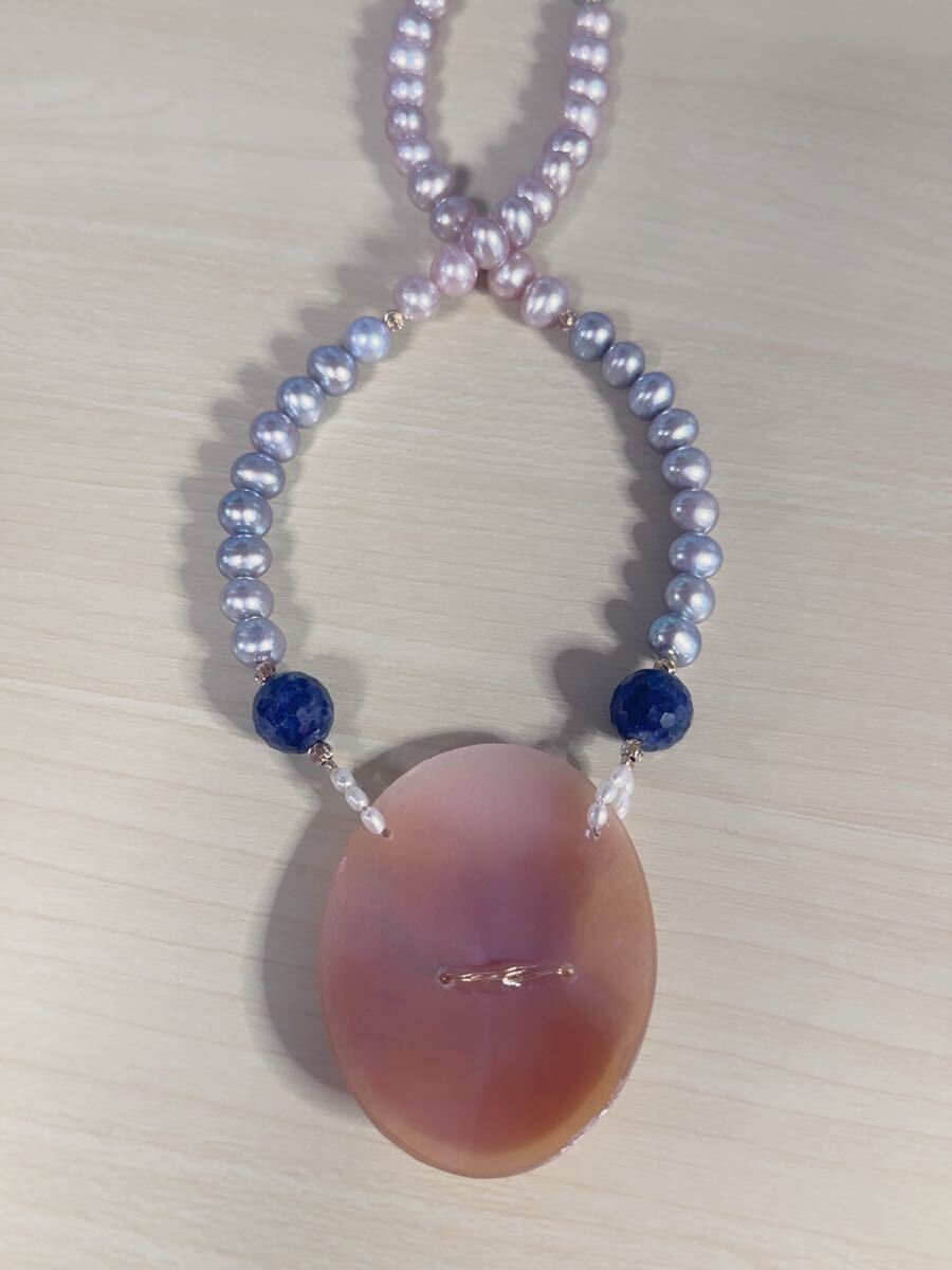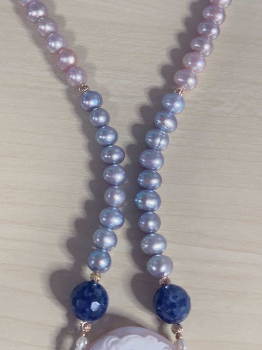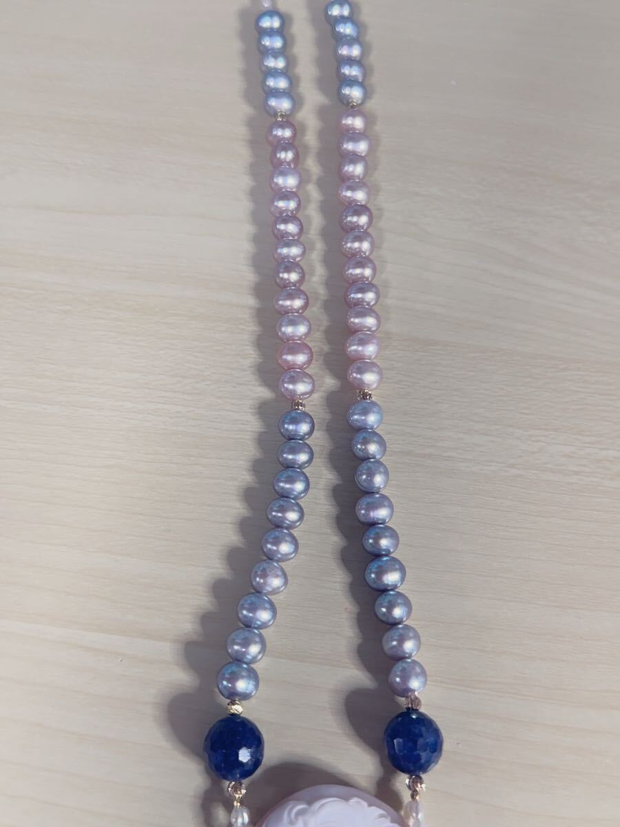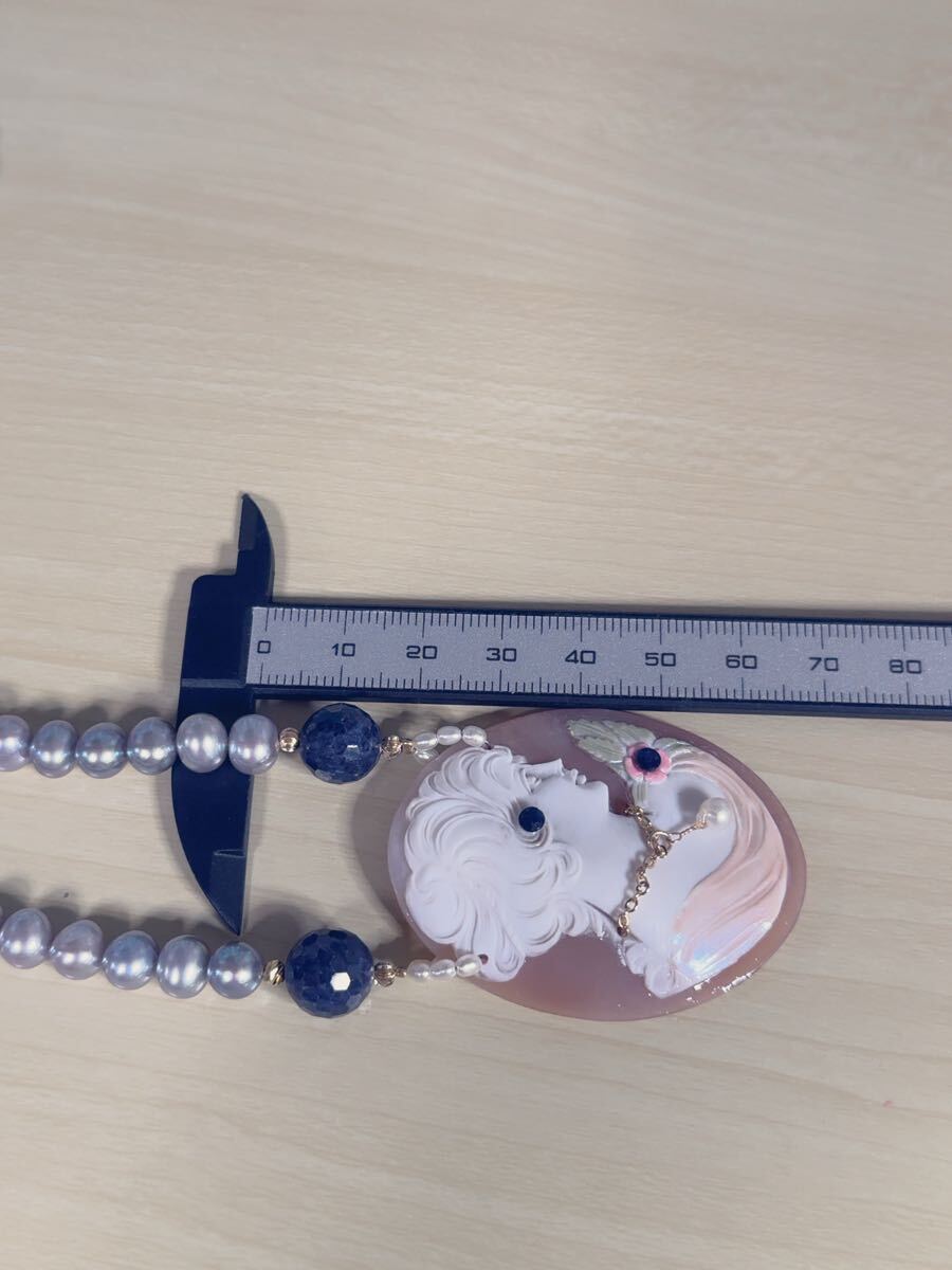K18金パール&シェルカメオコンビデザインネックレス