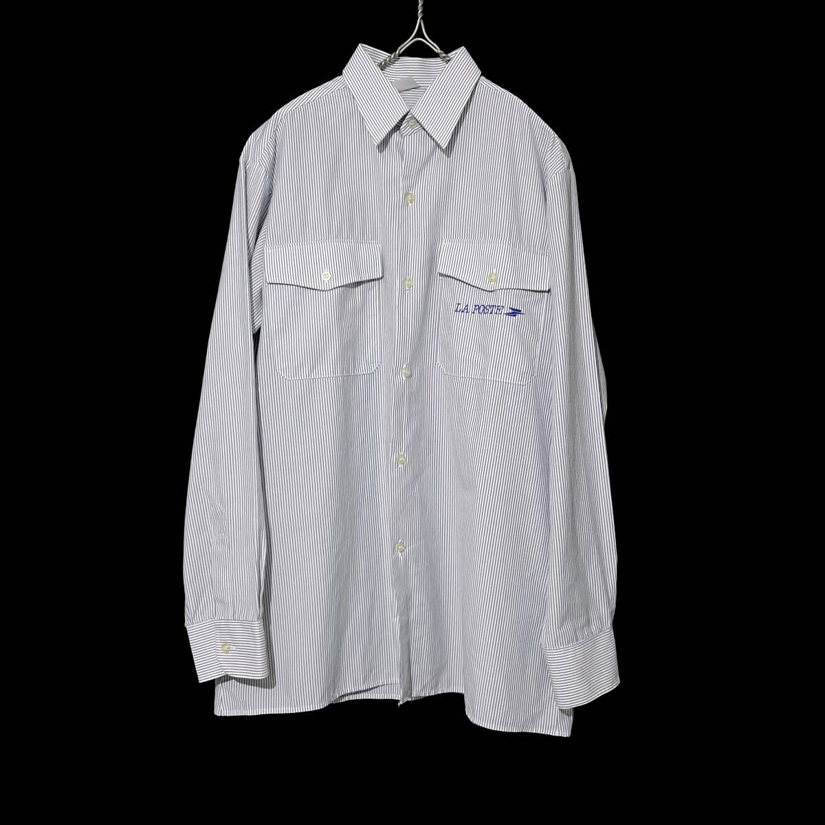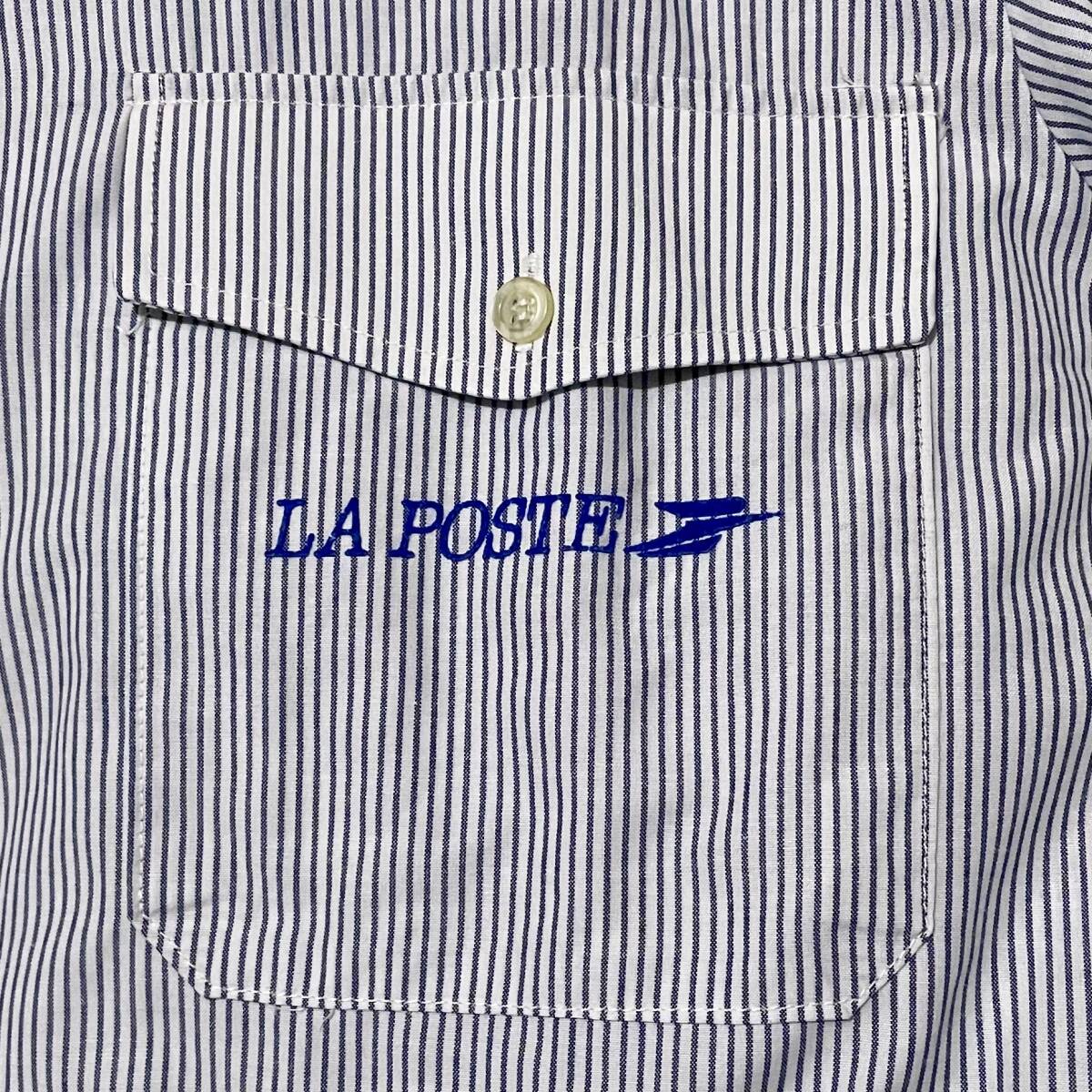 コレクターも多いLA POSTE(郵便局)のもので、ロゴが胸に刺繍されております。 裾がストレートカットなのもフランスっぽいですね。 生地はしっかりた状態で、シミや汚れ、ダメージなど無い良好な状態です、着用回数の少ない個体だと思います。 ネックのタグは印字が消えておりますが、素材は恐らくコットン、ポリ混紡で、サイズはM-L程度かと思います。 |