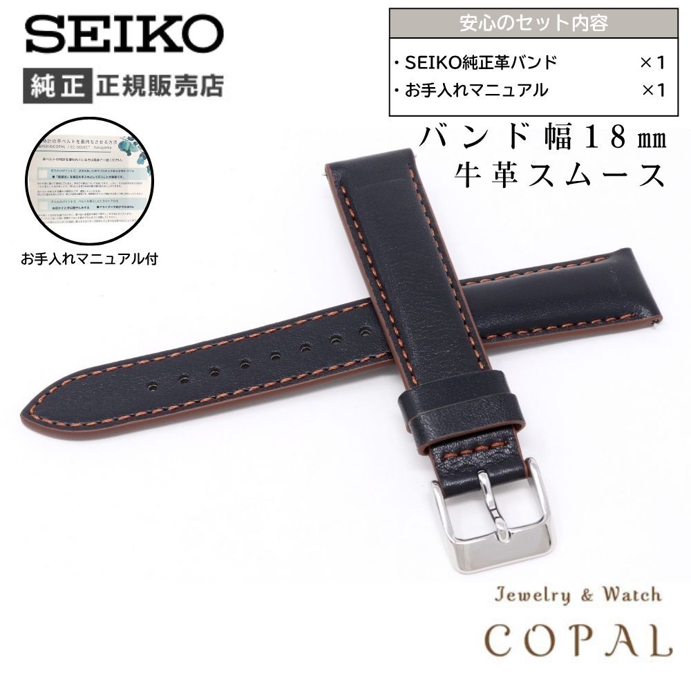 . | セイコー 純正 バンド 18mm 牛 革 黒 ブラック ベルト スムース 厚型 |