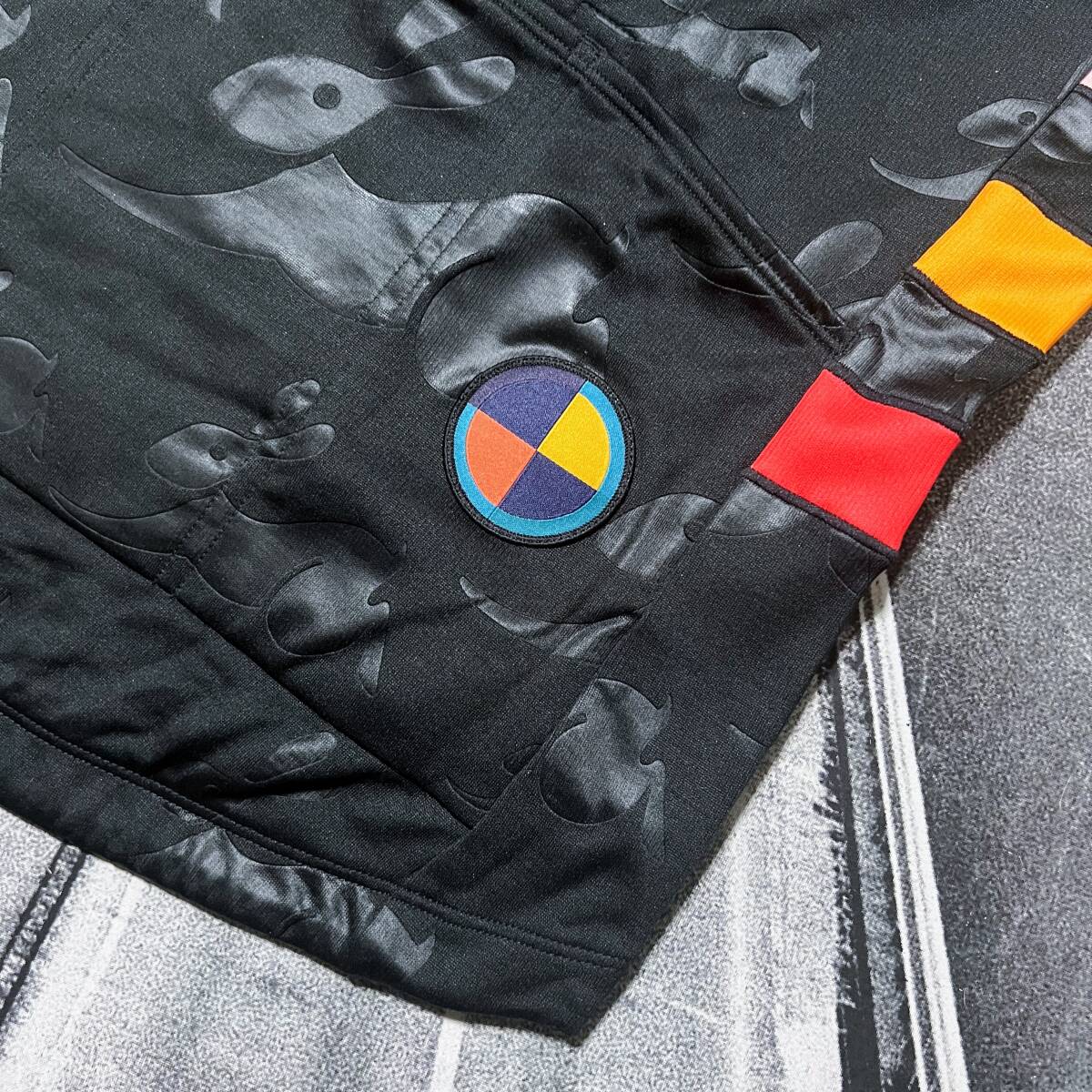 全面にエンボス加工されたラビットのモチーフや、チンガードにストライプがあしらわれたクオータージップ、左腕のアイコニックなRaphaのアームバンドや胸元のデュアルロゴなどアクセントディテールも満載。