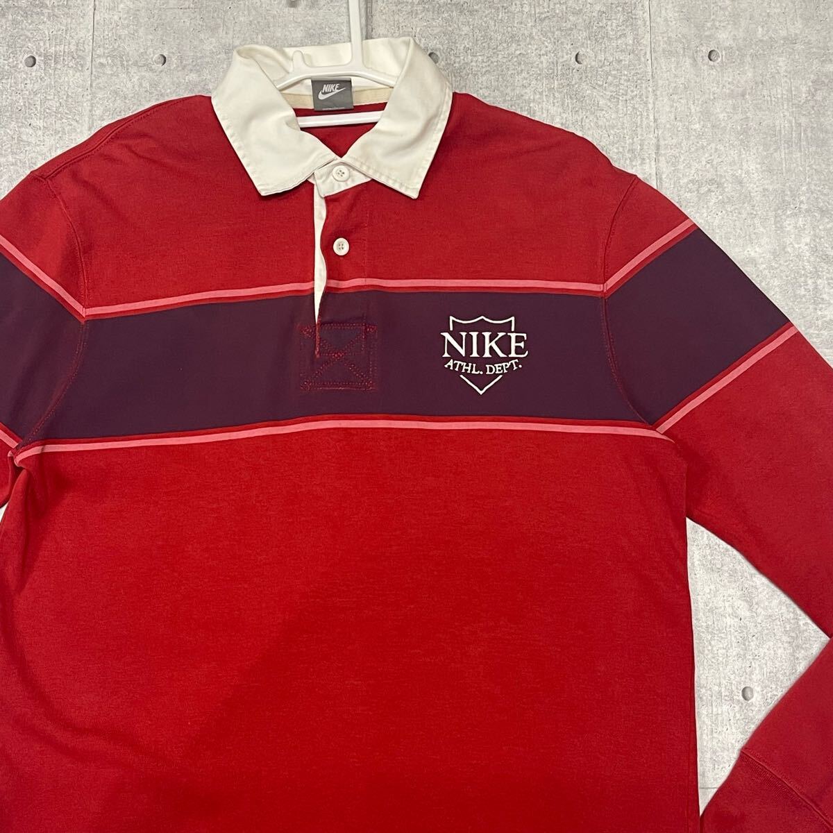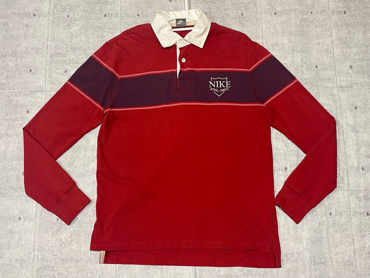 NIKE ATHL DEPT ラガーシャツ ボーダー ストライプ ラバーボタン  ナイキ アスレチック デプト スポーツ トレーニング YL2361 タウンユース しっかりした上質素材 ロゴボタン
