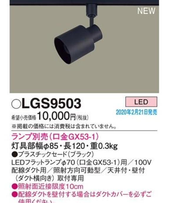 【新品同様極美品】Panasonic ライティングレールLED LGS9503+LLD3020MLCE1 3セット