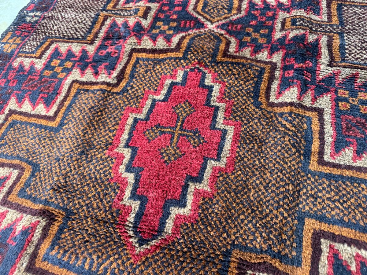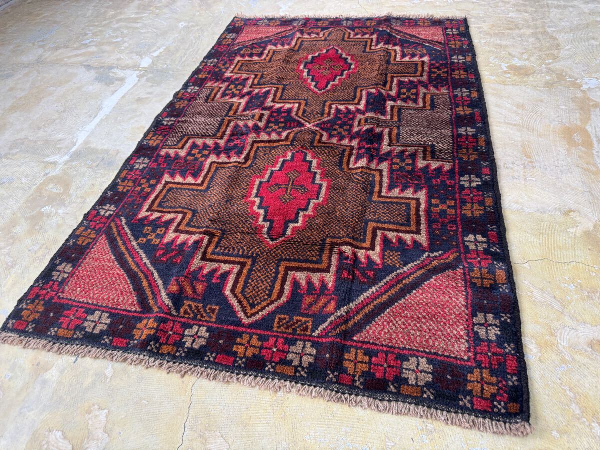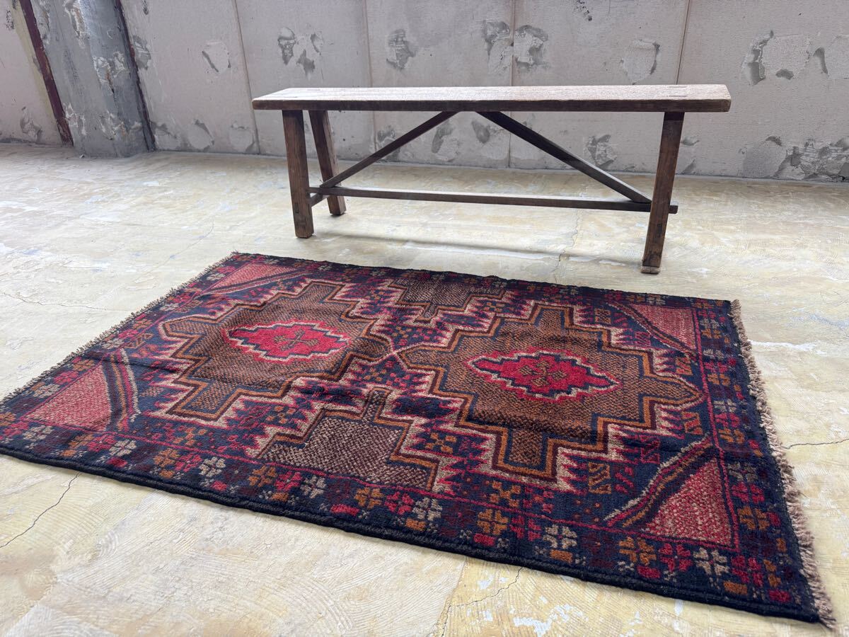 ¥28,000→¥18,000 トライバルラグ ヴィンテージ家具 132×87cm 手織り 絨毯 カーペット ヴィンテージ ラグ ペルシャ絨毯