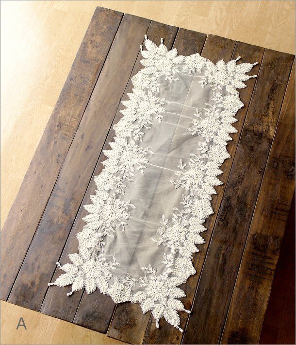 | こちらのページでは【Aタイプ】のみの販売です テーブルの上に敷くだけで お洒落な雰囲気になるテーブルランナーです ダイニングテーブルはもちろん チェストやローボード、棚に、 クロスや花瓶敷きのように使うと お洒落な空間に早代わりです チュールレースに 花柄の刺繍を施し、 パールビーズやビジュー、スパンコールなどを ハンドメイドで刺した ボリュームと高級感のある エレガントなデザインです 商品名 : ビジュー付きテーブルランナー 40×100 商品番号 : vin2103 全体のサイズ(cm) : 40×100 材質 : ポリエステル 生産国 : 中国 ※たたみ皺はご容赦ください ※洗濯方法:手洗い ※輸入品につき生地部分のたるみ、シワ、糸のほつれ、織り傷、糸の混入等はご容赦ください ※ビーズは一つ一つ、手で刺しています。お取り扱いにはお気をつけください ※ディスプレイによる色の違いはご了承下さい |