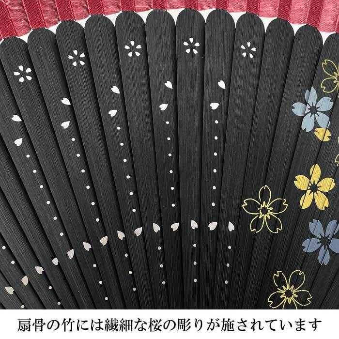 短地仕立ての扇骨に施された桜の彫りもオシャレなワンポイント。