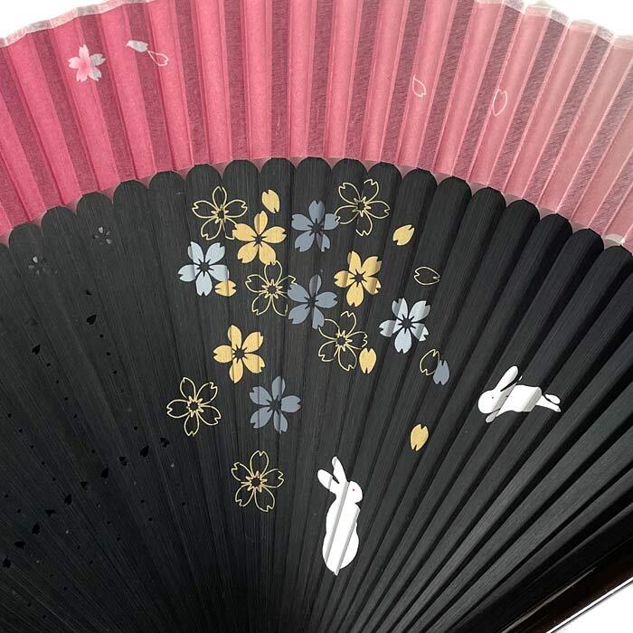 扇子セット 桜うさぎ 臙脂 夏のギフト 贈り物 夏小物 エコ 涼感グッズ 飛沫対策 絹扇子 竹扇子 短地 扇子袋付 浴衣に合う扇子