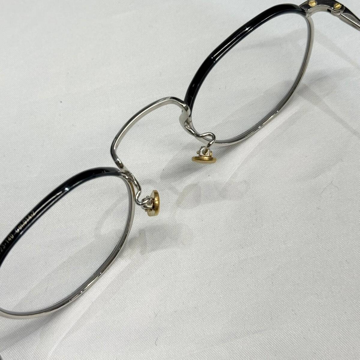 | 備考 | モデル名、Editor (エディター)は編集者の意味。OGbyらしく伝統的なスタイルをその導入としつつも、コンテンポラリーなデザインでフィニッシュした一本。女性にもオススメです。Col.014-2は、クラウンパントスタイルにシルバーのメタルフレームをベースとしたモデル。上リムに施されたブルーのエナメル塗装が、シンプルなシェイプに奥行きをもたせることに一役買っています。※目立った汚れはございませんが完璧を求めるかたや古着にご理解ないかたはご購入をお控えくださいませ。 |