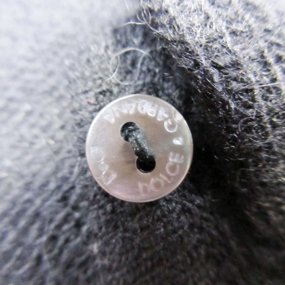 首元、前立て、袖口のフリルデザインが華やかなカーディガン。アンゴラ混ニットで暖かいです。ボタンにはD&Gのロゴ入り。